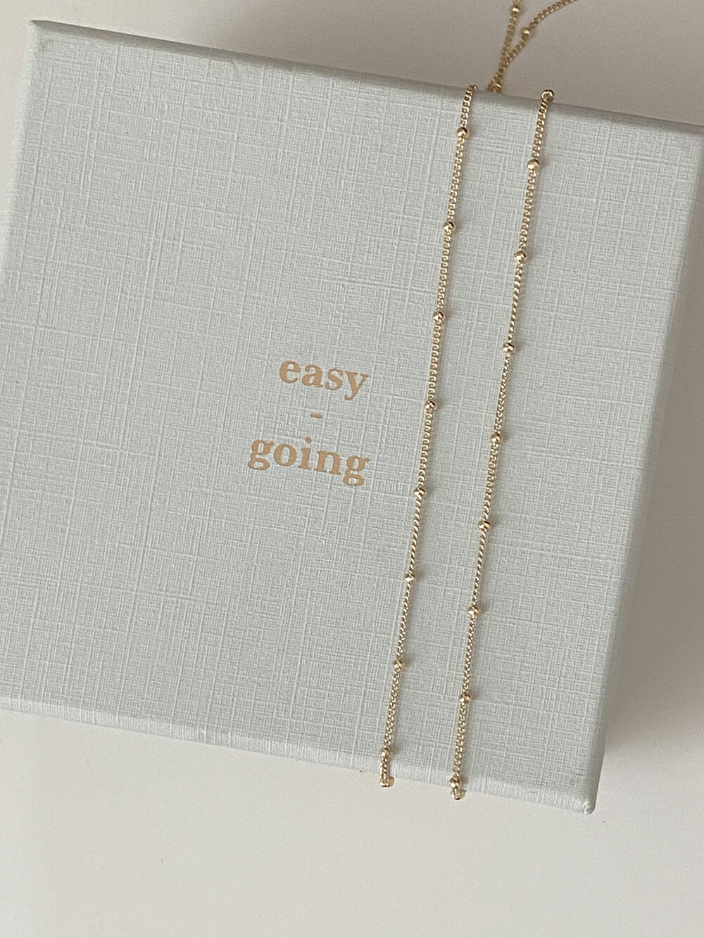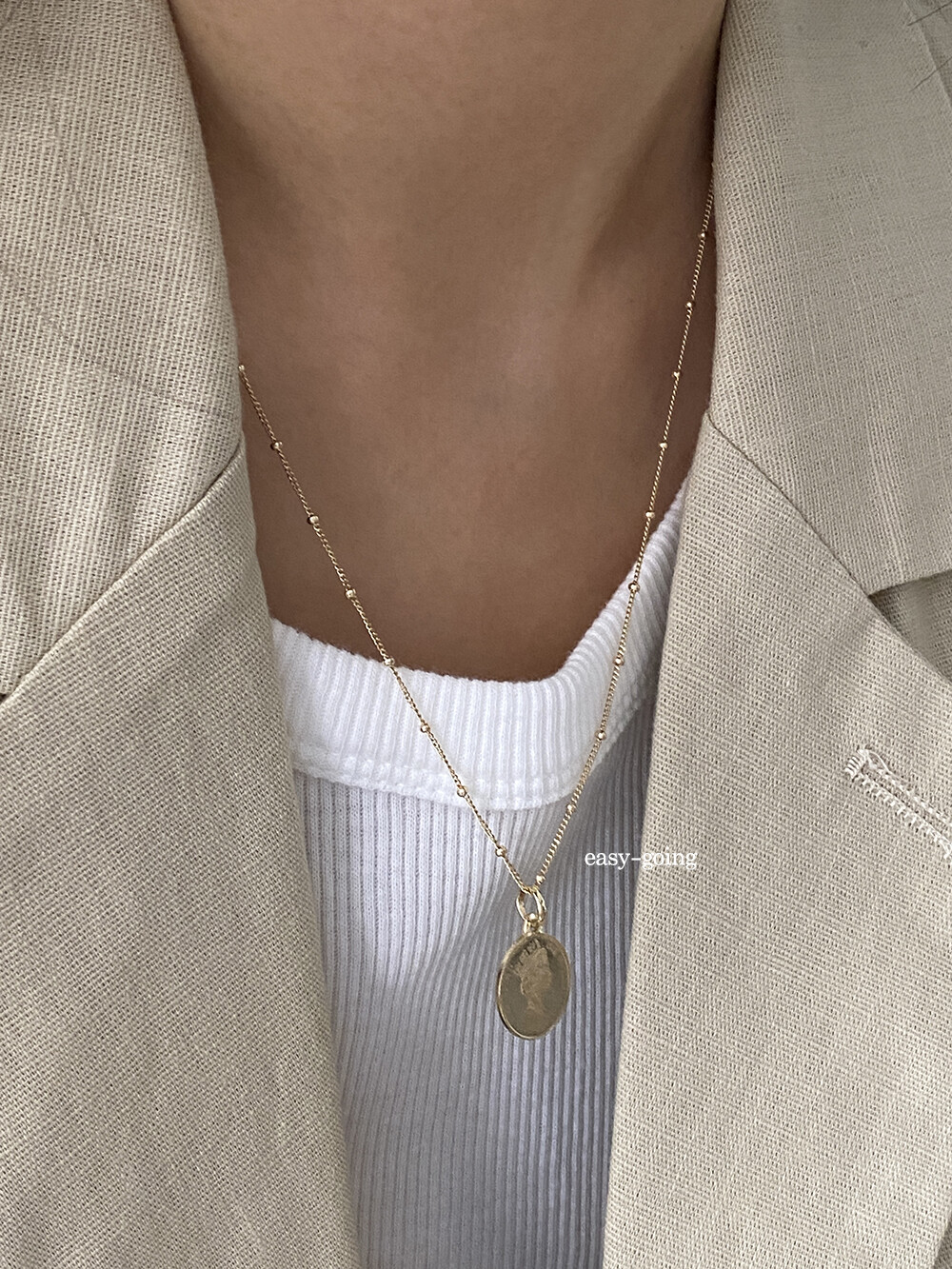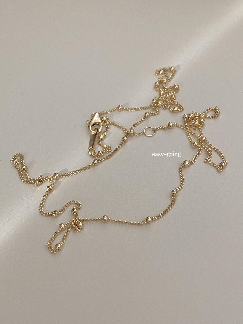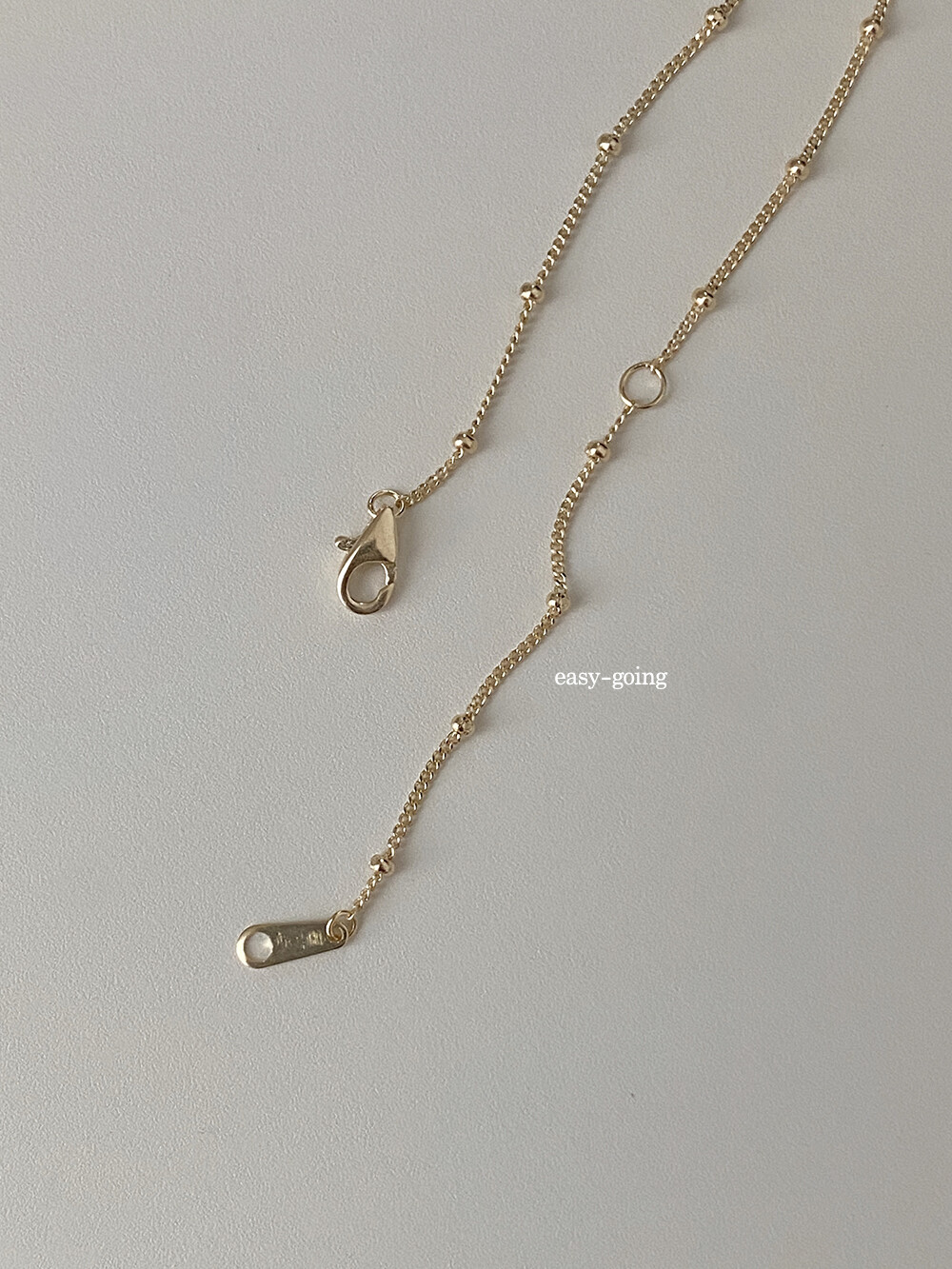 - 활용도 높은 에센셜한 5푼 목걸이 체인입니다. 약 1.8mm 정도의 작은 볼이 들어가 은은한 포인트가 되어 주었어요