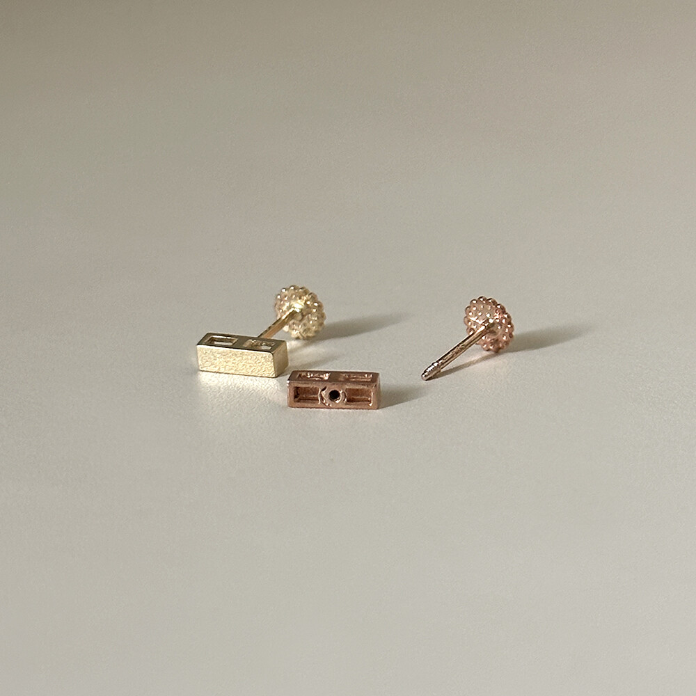 제품 공정상 어쩔 수 없는 부분 (미세한 스크레치와 얼룩, 925silver와 14k 제품의 살짝 휘어진 침, 담수 진주의 스크레치와 형태차이 등등 )에 의한 교환/반품은 불가함.