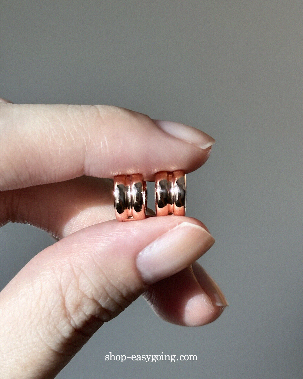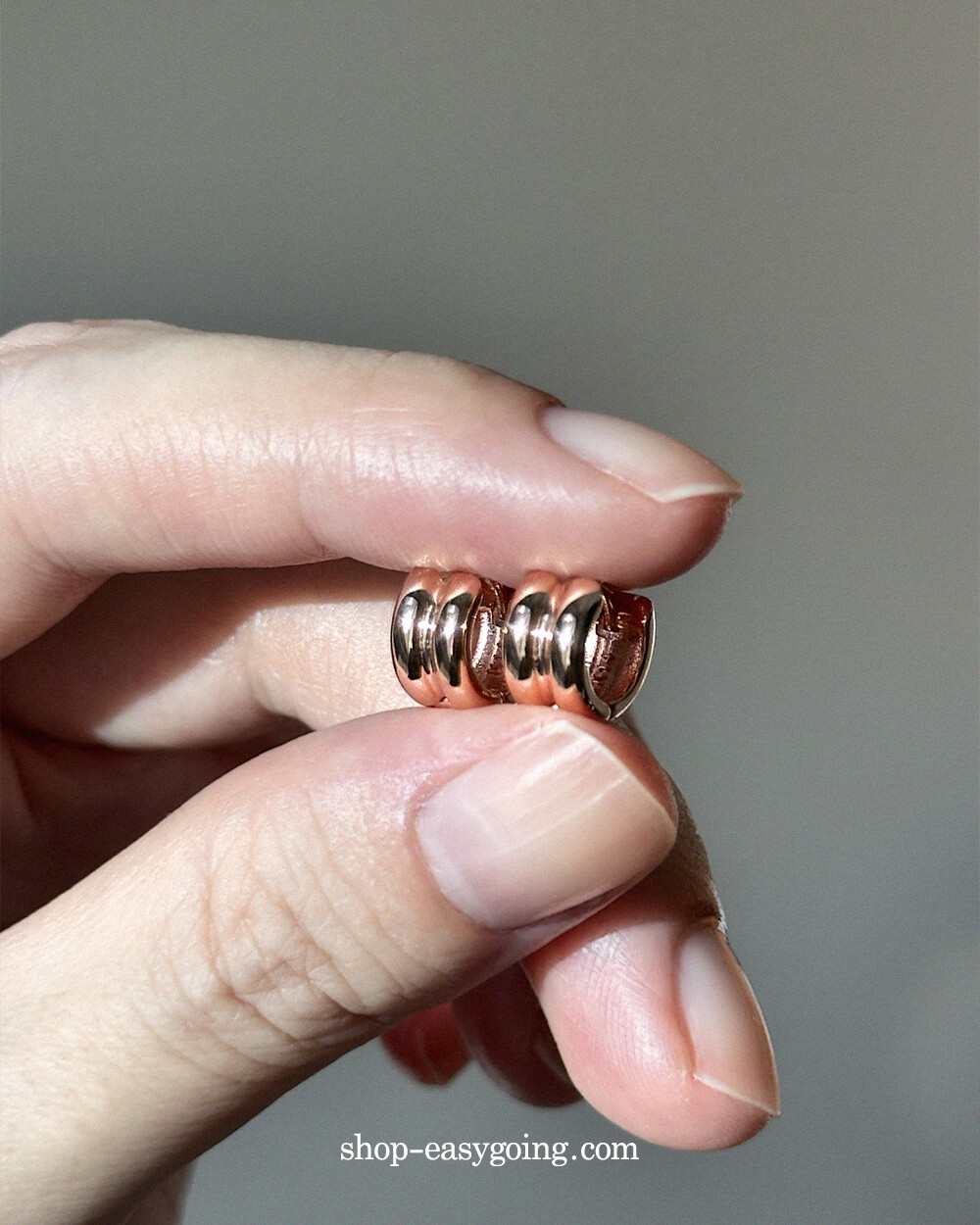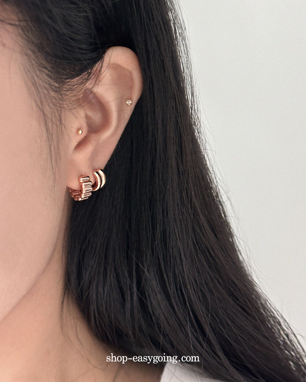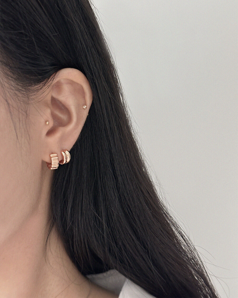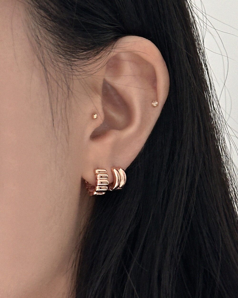 - 내경 약 6mm 정도의 작은 사이즈라 귓볼이 얇거나 아랫쪽으로 뚫은 분들께 추천드려요 (착용모델은 귀가 작고 얇은 편입니다. 제품을 실제로 보시면 더 작게 느껴지실 거예요)