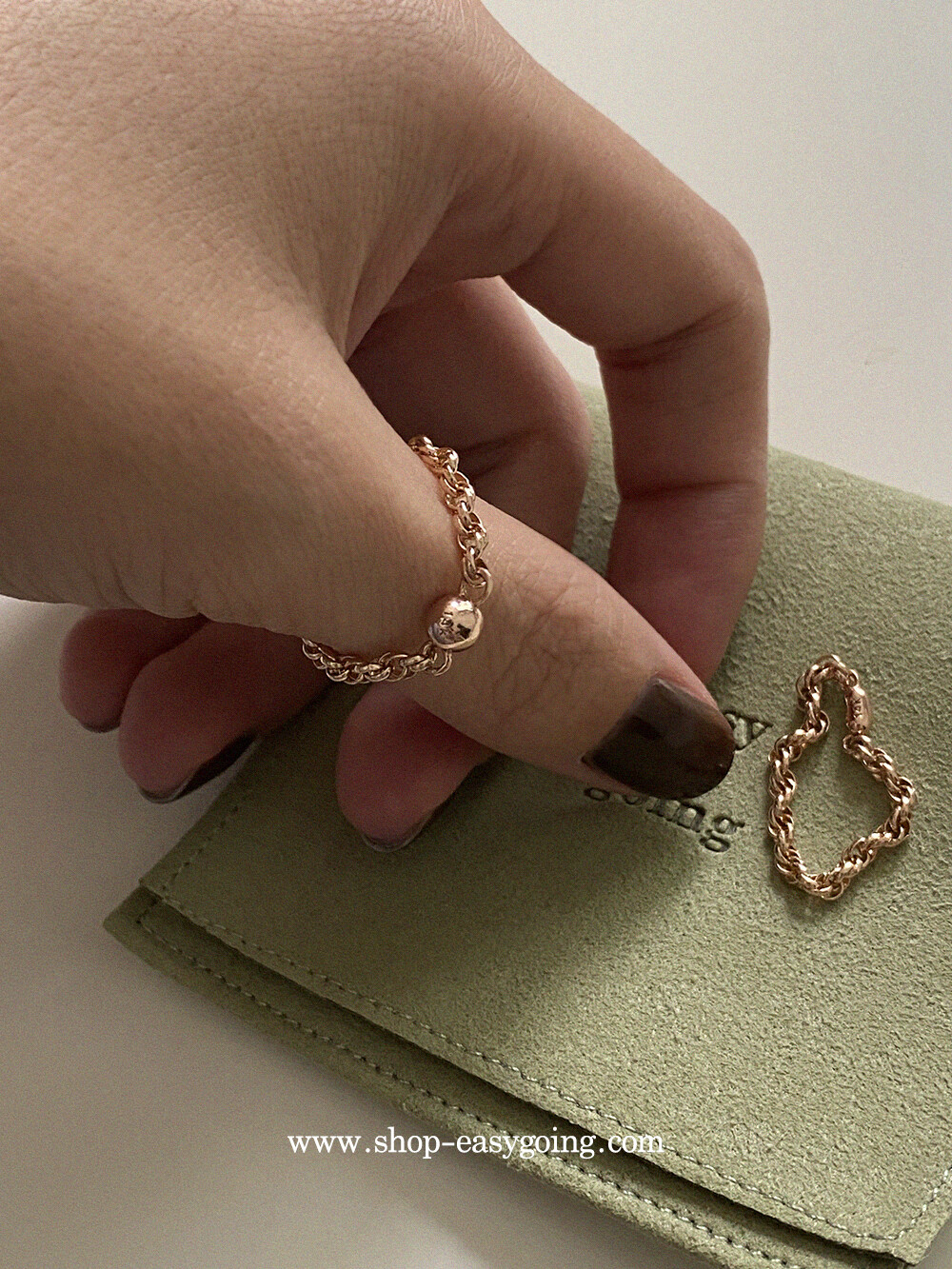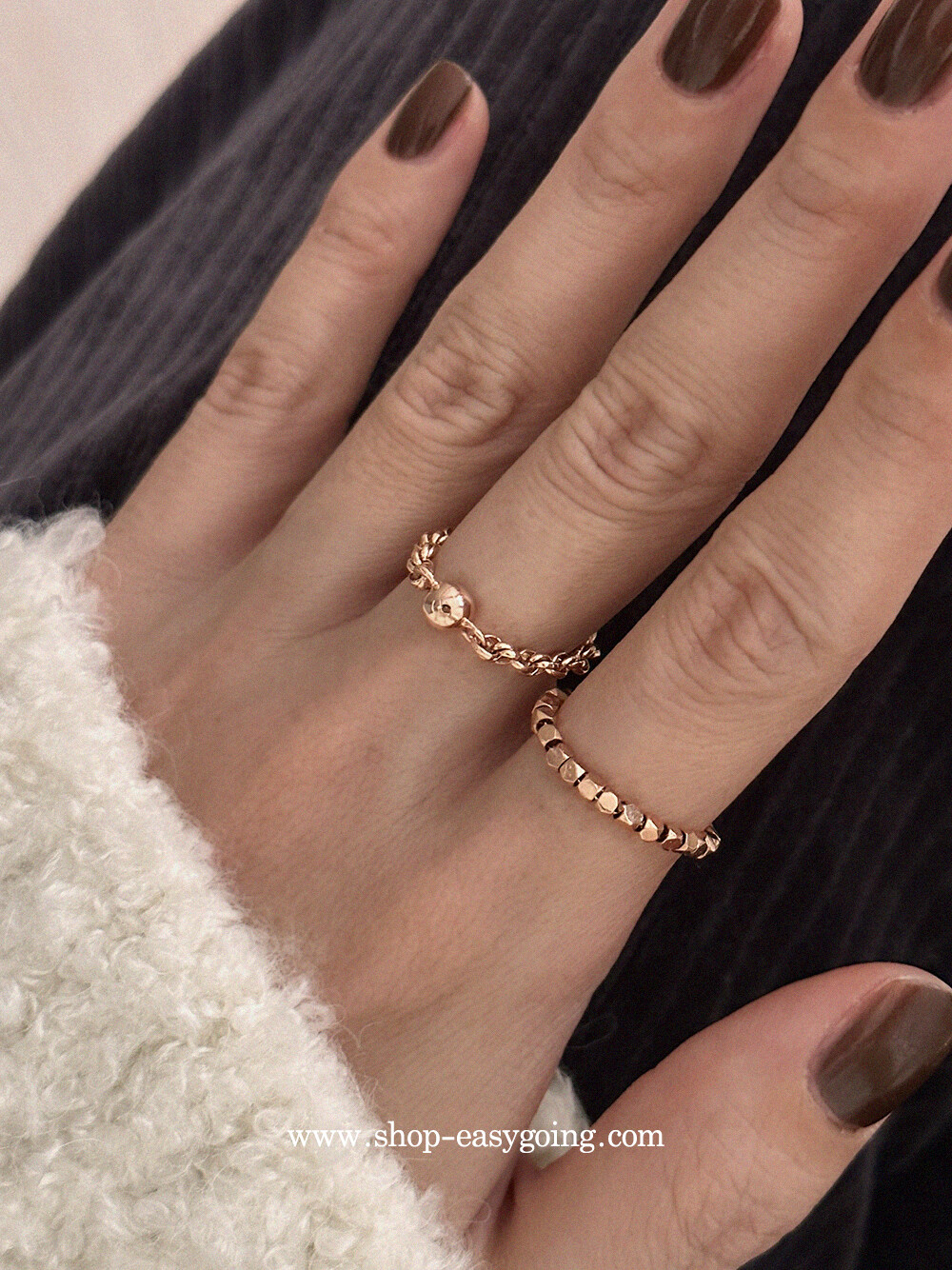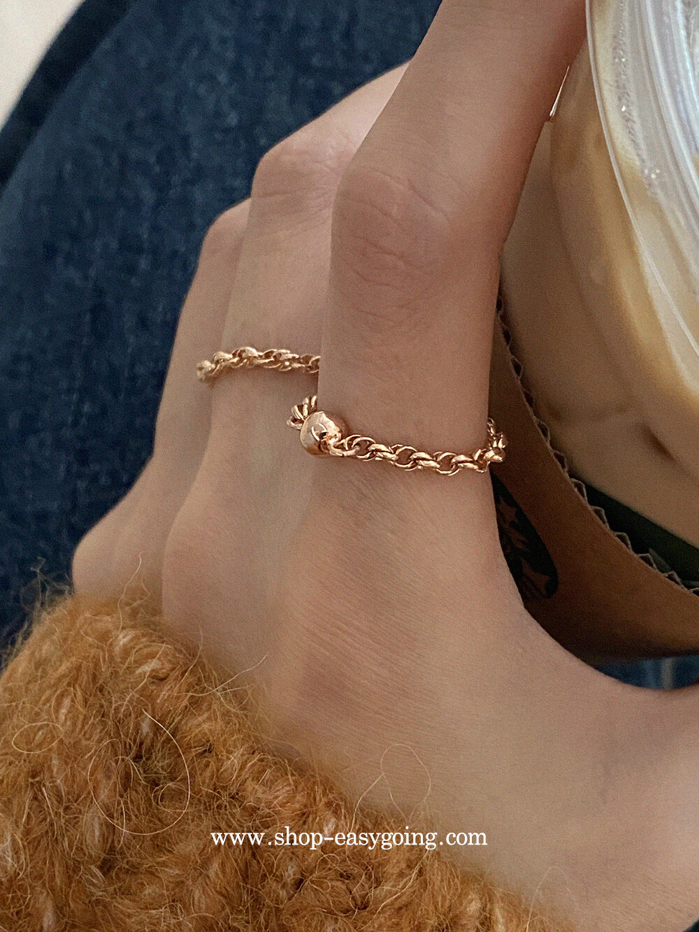 - 도톰한 체인반지라 착용감과 디자인 모두 만족한 제품이에요 특히나 체인반지를 좋아해주시는 분들이 많은데요 대부분 얇고 은은한 느낌이였다면 이 제품은 확실하게 포인트가 되어주는 사이즈랍니다 체인, 체인+볼 두가지 디자인으로 선보일게요(체인+볼 추가금이 발생하지만 동일한 가격으로 진행합니다♥︎)