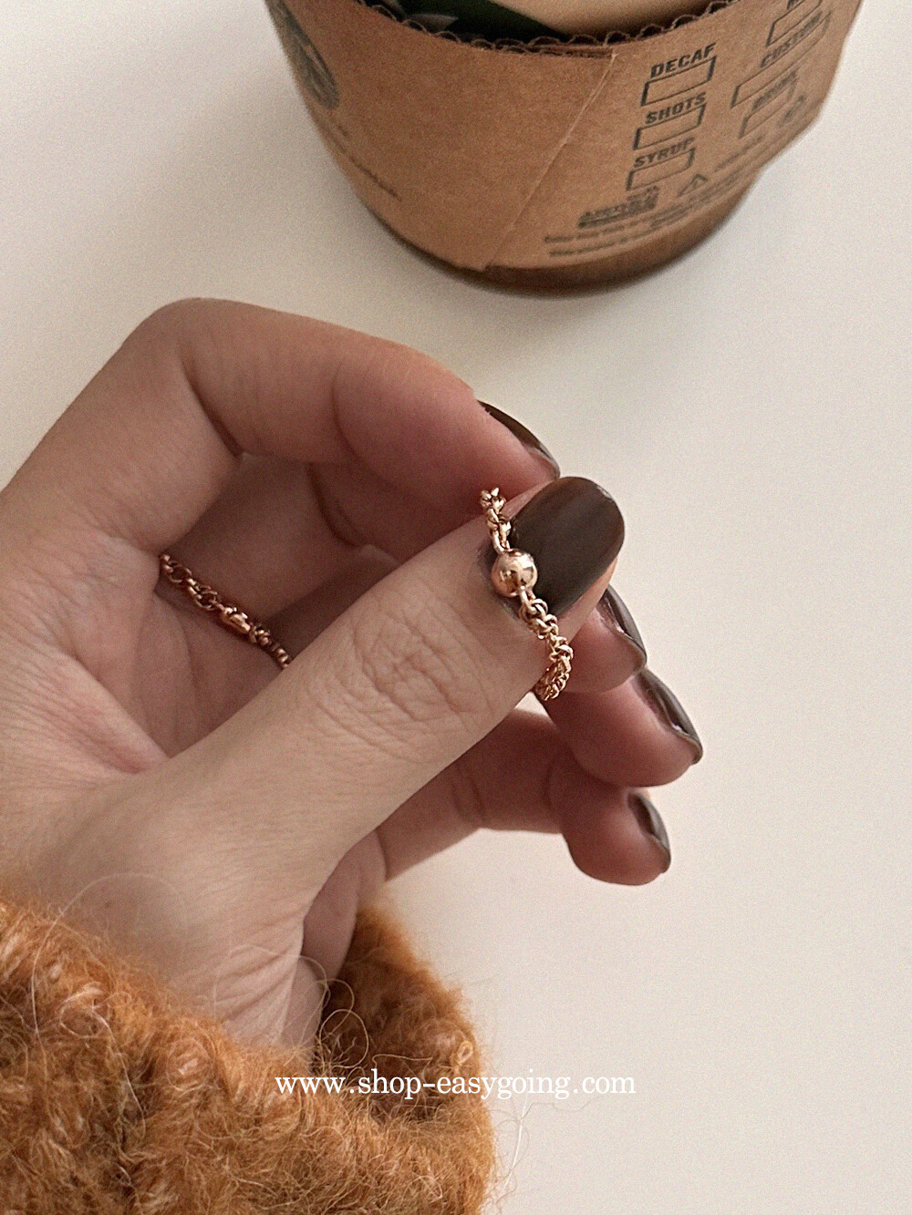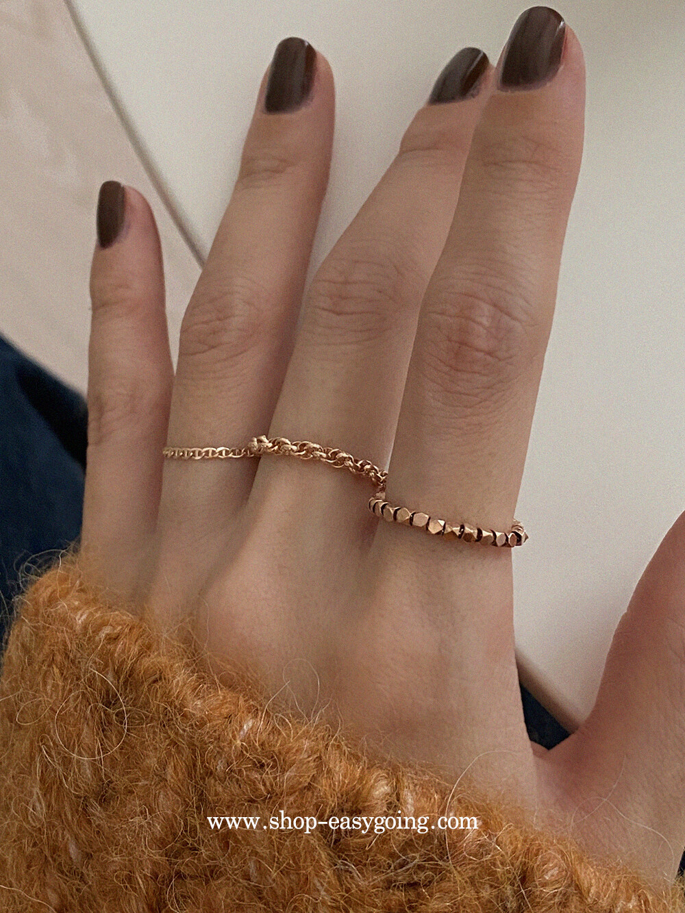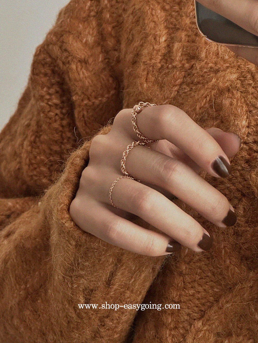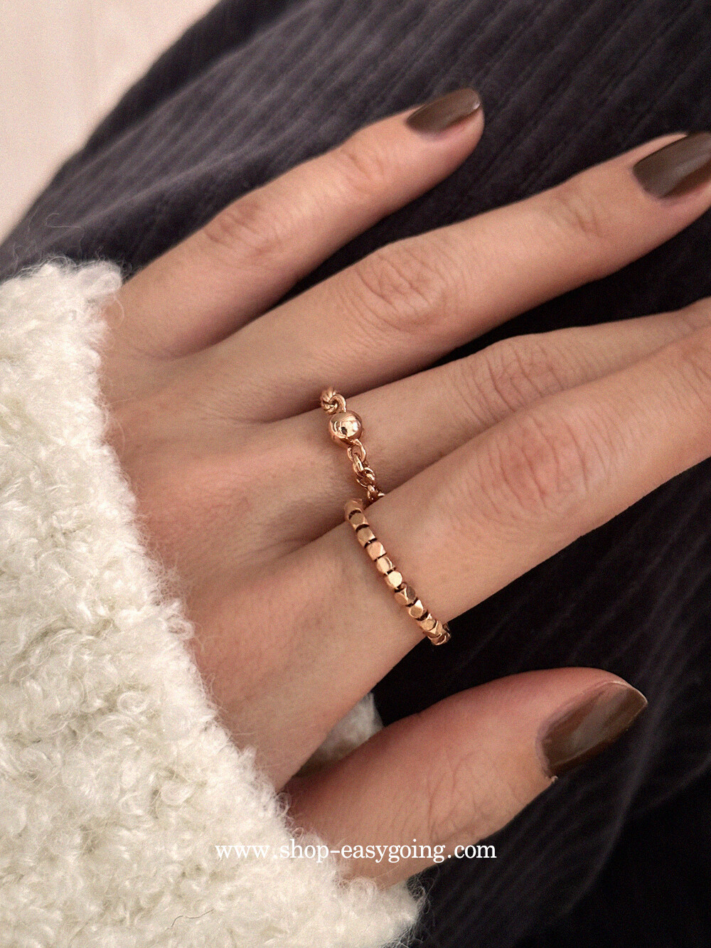- 도톰한 체인반지라 착용감과 디자인 모두 만족한 제품이에요 특히나 체인반지를 좋아해주시는 분들이 많은데요 대부분 얇고 은은한 느낌이였다면 이 제품은 확실하게 포인트가 되어주는 사이즈랍니다 체인, 체인+볼 두가지 디자인으로 선보일게요(체인+볼 추가금이 발생하지만 동일한 가격으로 진행합니다♥︎)