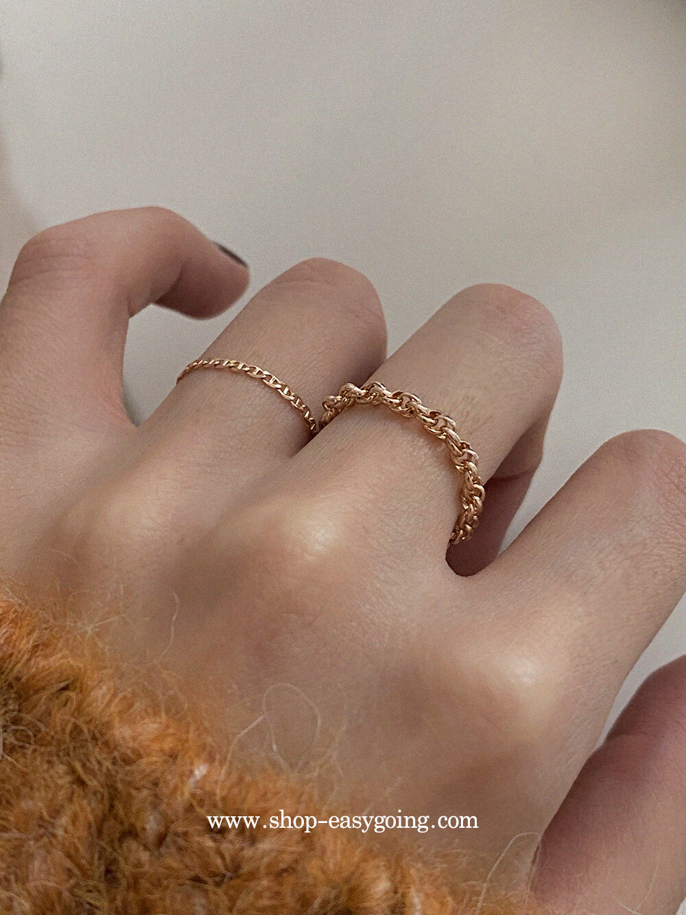 - 꾸준하게 주문이 있는 [ 탱글 로프 체인 팔찌 ] 와 같은 체인인데 반지가 좀 더 두꺼운 굵기입니다 아래 비교사진 올려두었어요:)