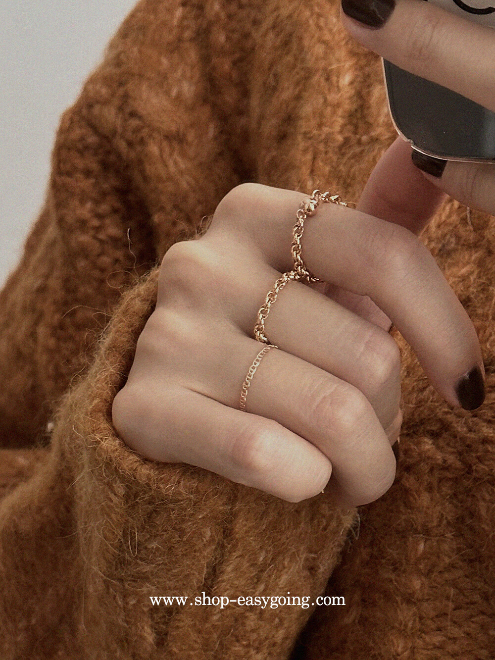 - 이 제품은 체인의 무게감이 있어서 1호수 크게 착용했더니 흘러내림이 있었어요 손가락 살이 튀어 나오지 않고 착용한 모습은 예뻤지만 딱 맞는 정사이즈를 더욱 추천드립니다