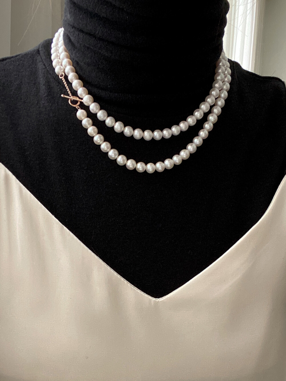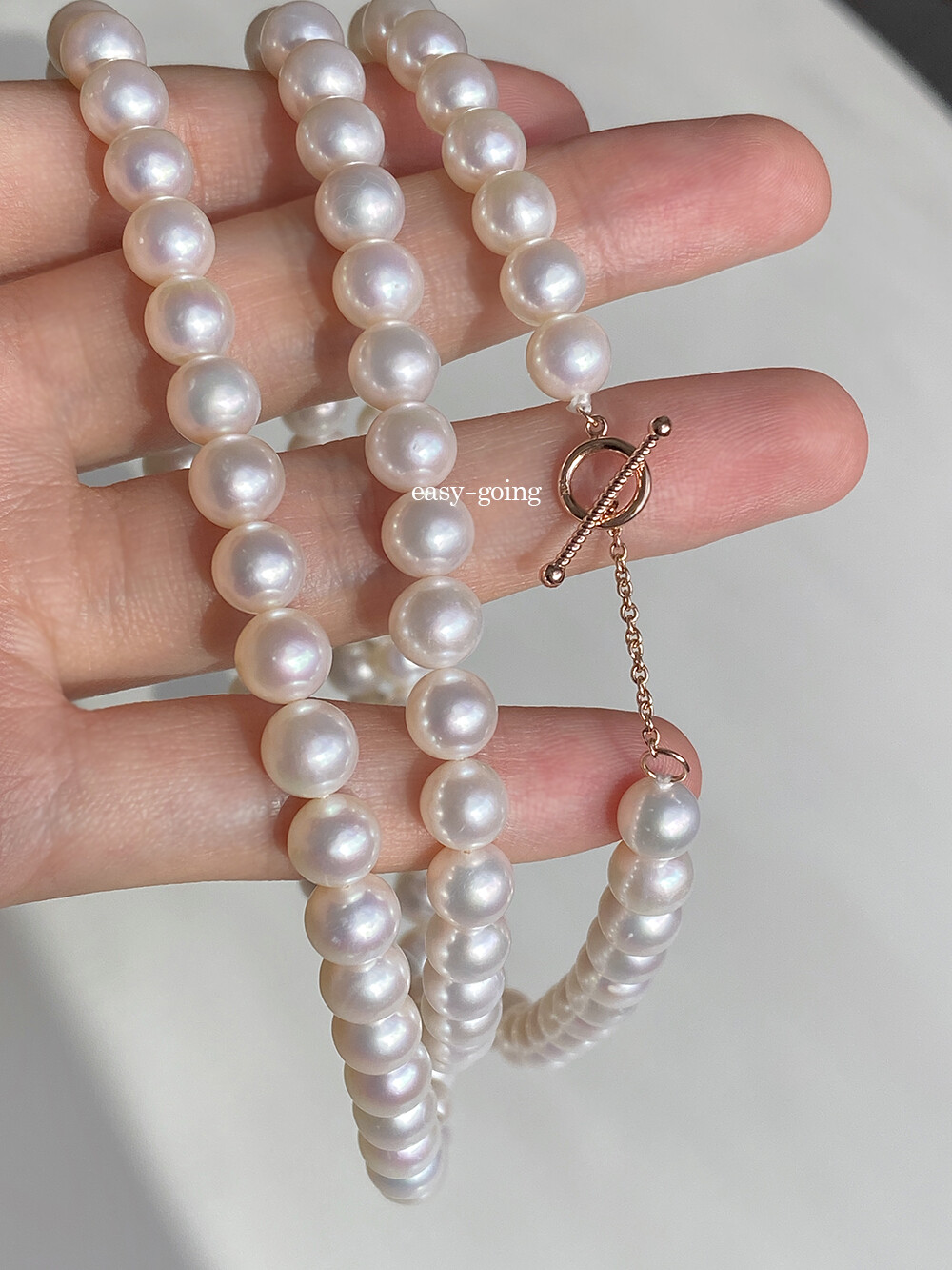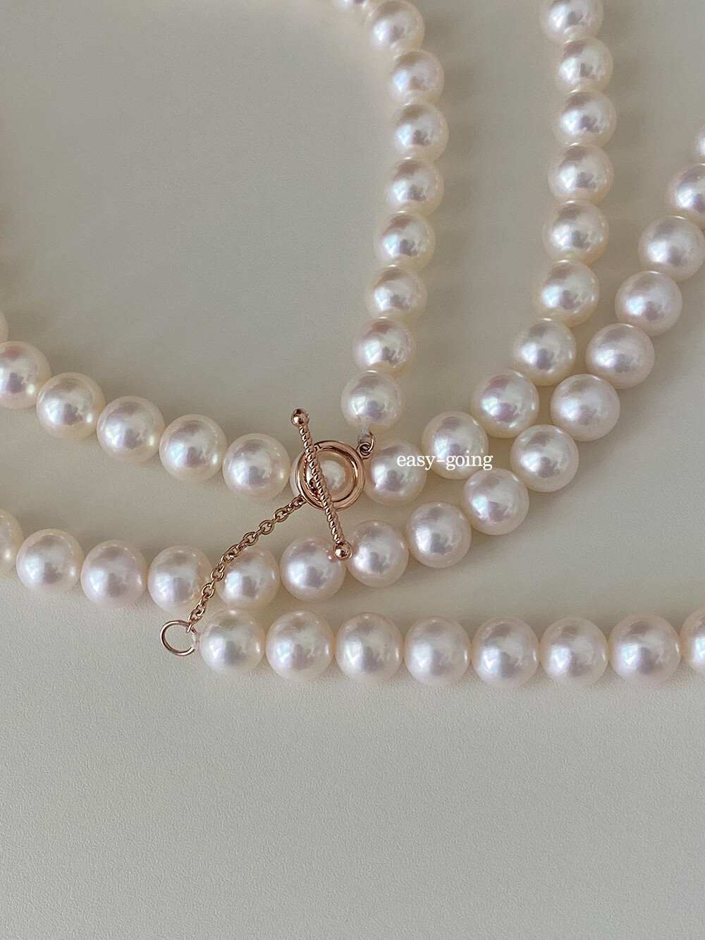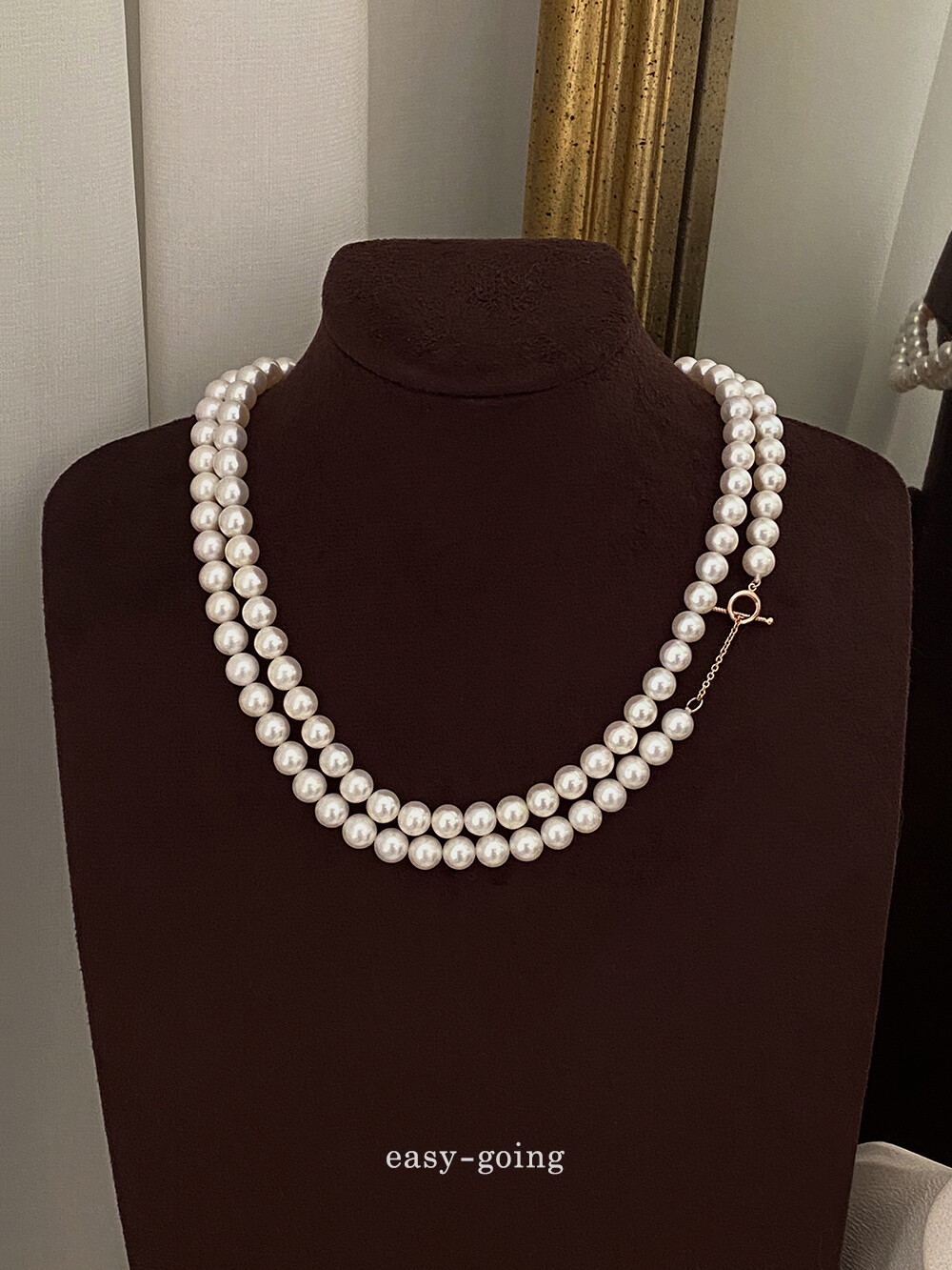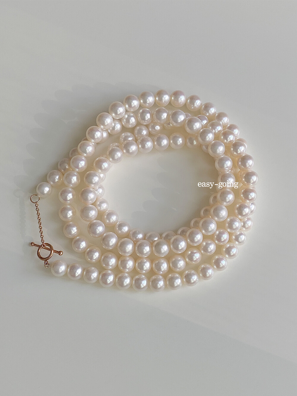- 3mm~4mm 진주가 잔잔한 느낌으로 무난하게 매치하기 좋다면, 이 제품은 7mm~7.5mm 사이즈로 진주의 매력을 확실하게 보여주는 제품 같아요:)
