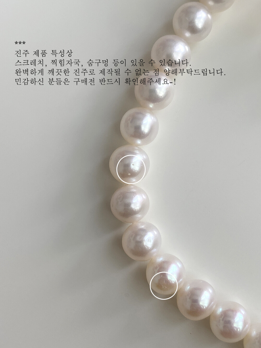 천연석, 진주 : 소재 특성상 미세한 스크래치, 형태의 차이가 있을 수 있습니다. 세척액을 사용하지 마시고(진주:진주전용세척액 제외) 열과 염소성분에 노출되지 않도록 주의해주세요. 직사광선에 오랜시간 노출되면 손상될 수 있습니다 (사우나, 샤워시 절대 착용하지 마시고 제품 착용 후에는 마른 천으로 닦아 보관해주세요) / 진주 비드, 원석 비드 목걸이 중 와이어로 제작한 제품들의 와이어 마감 부속품은 14k gold 가 아닙니다.(공장에 따라 9k, 혹은 신주에 도금 / SR잠금+에이바+오링 = 14k gold)
