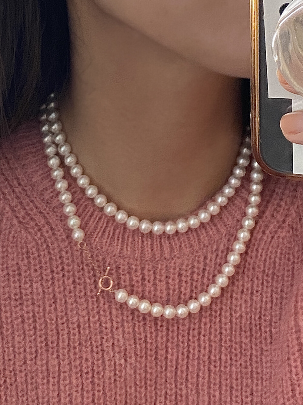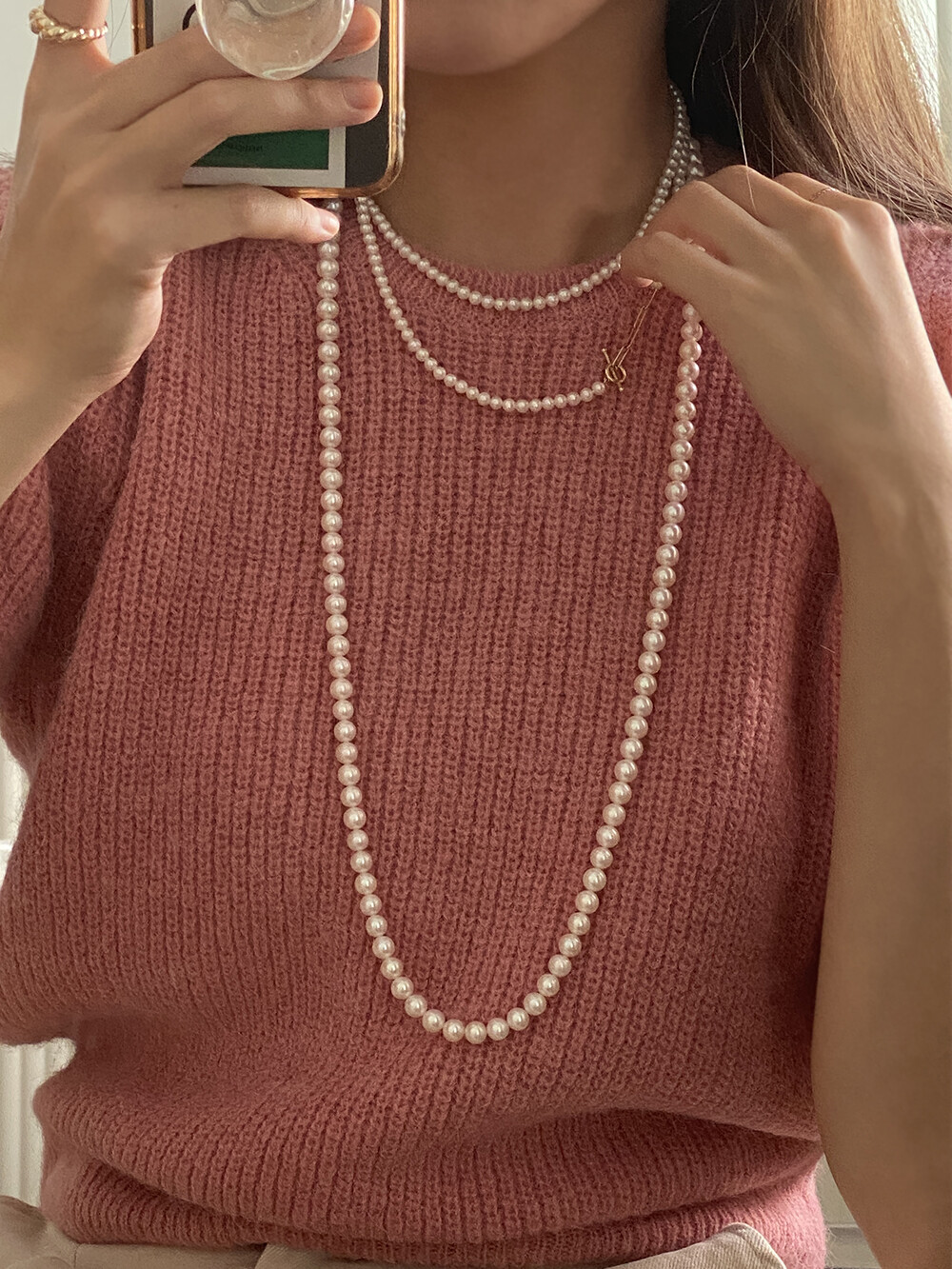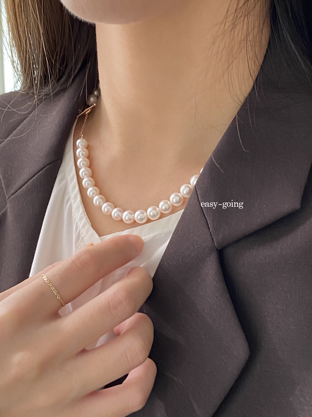 - 요즘에는 진주 제품을 꼭 특별한 날이 아니여도 편안한 니트웨어나 맨투맨 등 다양한 룩에 매치하기 때문에 일상에서 활용도 높은 제품입니다:)
