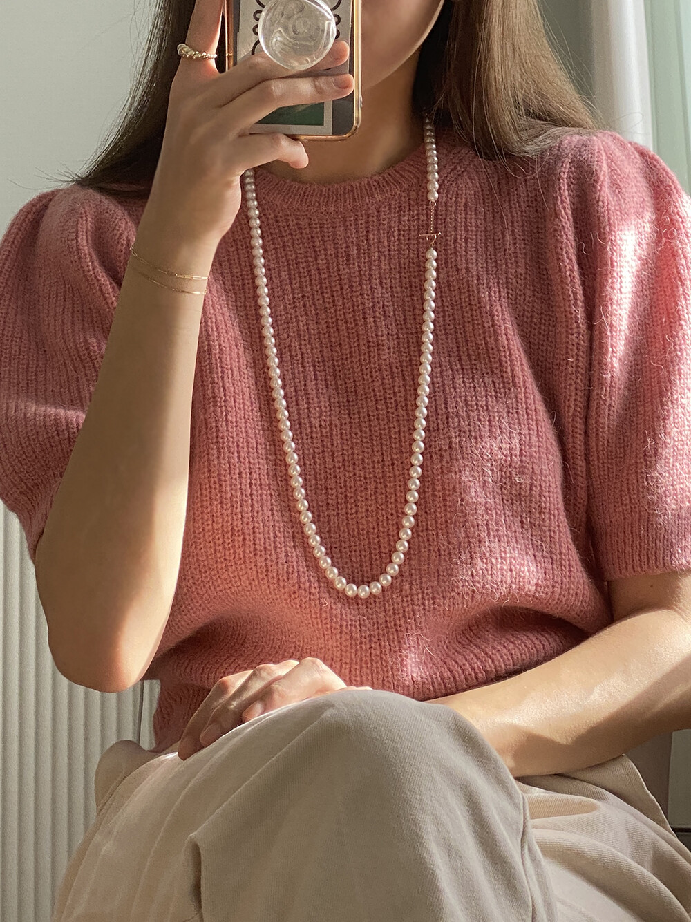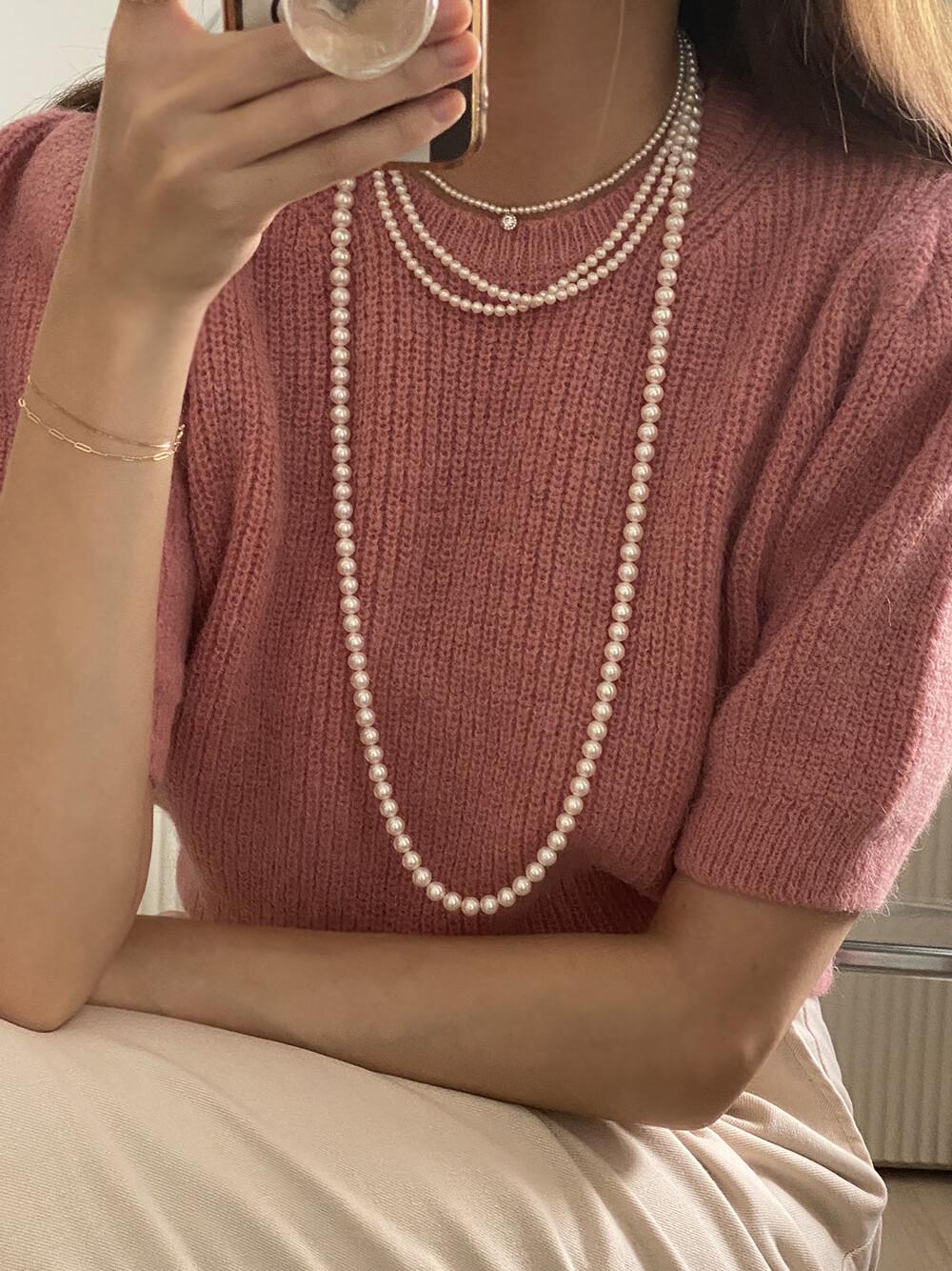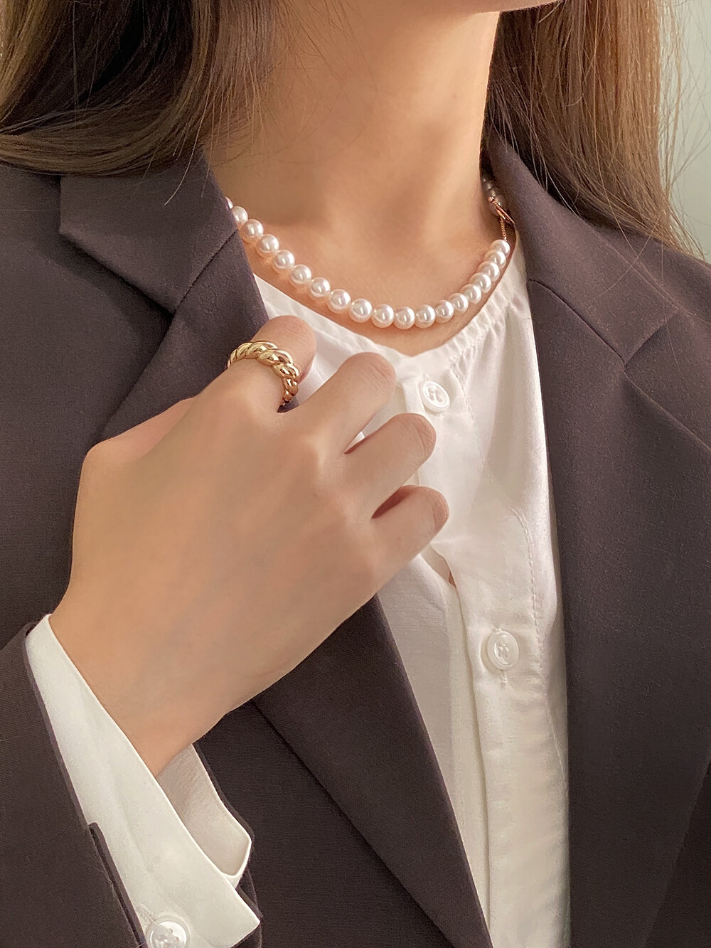 - 요즘에는 진주 제품을 꼭 특별한 날이 아니여도 편안한 니트웨어나 맨투맨 등 다양한 룩에 매치하기 때문에 일상에서 활용도 높은 제품입니다:)