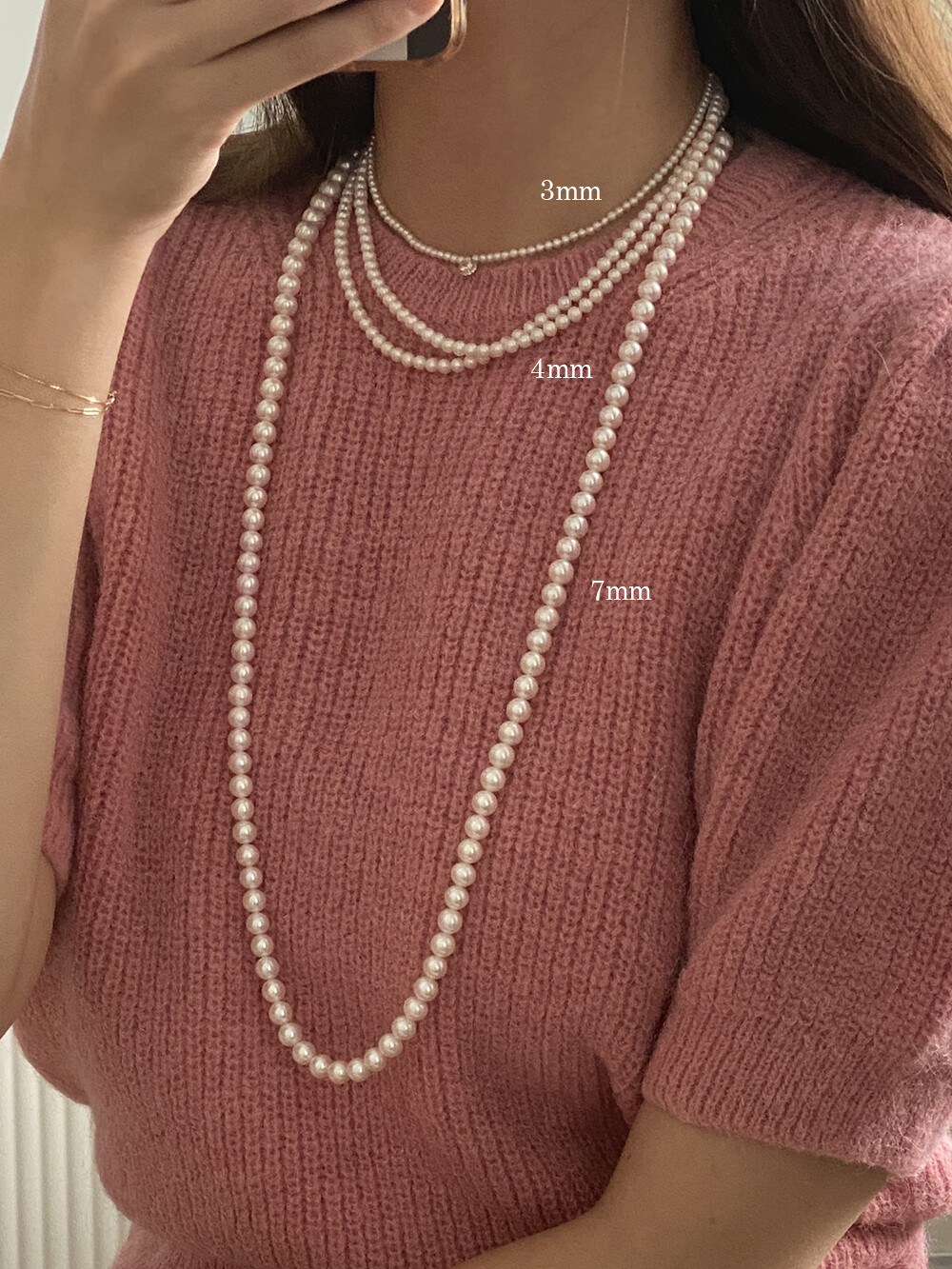 세가지 담수진주 네크리스 사이즈 비교해주세요:)