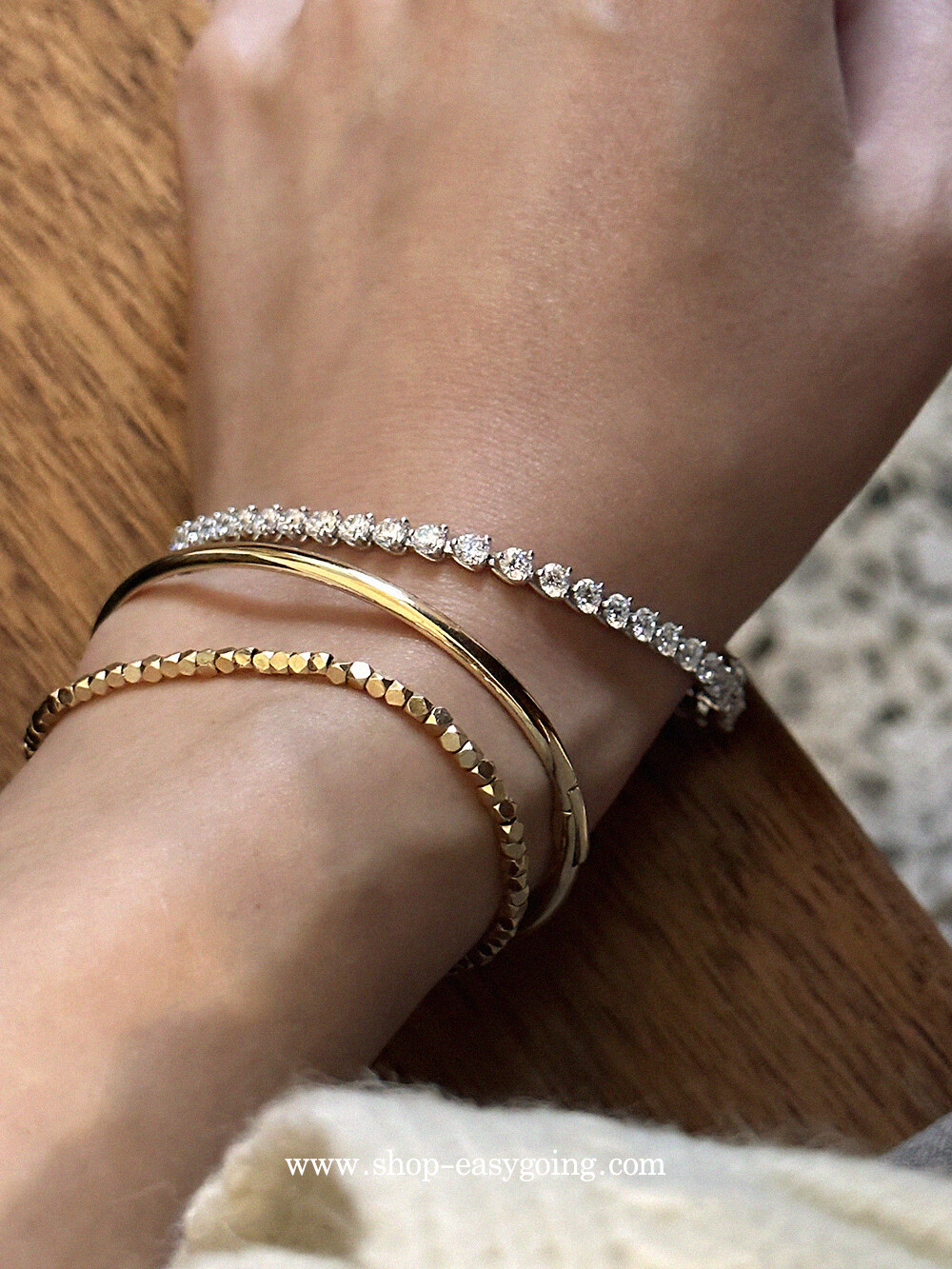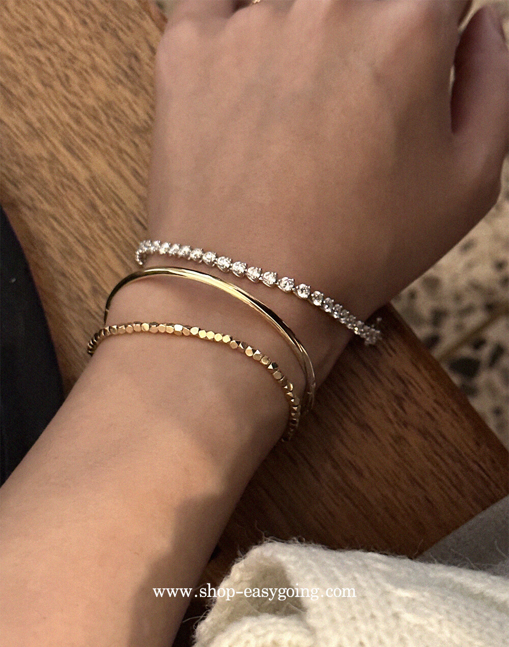 - 전체를 감싸는 물림이 아니기 때문에 팔찌에 충격이 가해지거나 걸림이 생길 경우 물림이 벌어질 수 있습니다 금중량을 낮게 실용적으로 제작된 제품으로 착용시 주의해 주세요-!