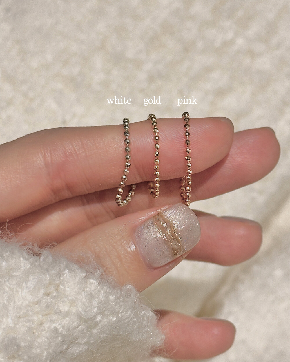 - 1.5mm 미러볼로 제작된 체인반지예요 잔잔한 반짝임이 실제로 착용했을 때 훨씬 예뻐보이는 제품이랍니다