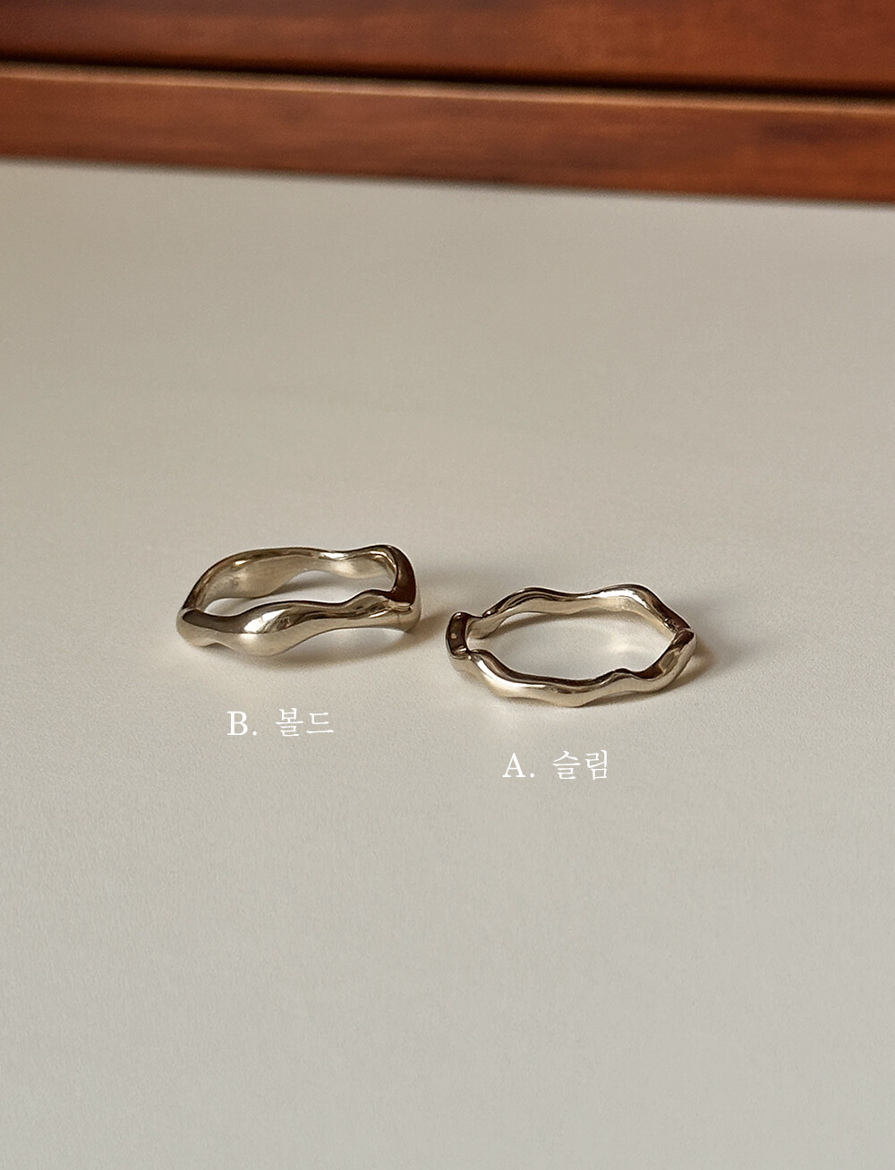 - 유니크한 라인으로 추천드리는 제품이에요 불규칙한 웨이브 디자인인데 14k/18k 디자인으로는 잘 나오지 않는 스타일이라 더욱 소장가치가 있는 반지예요 데일리로 착용하기도 좋고 다른 제품들과 레이어드하기도 좋아 더욱 추천드려요-!