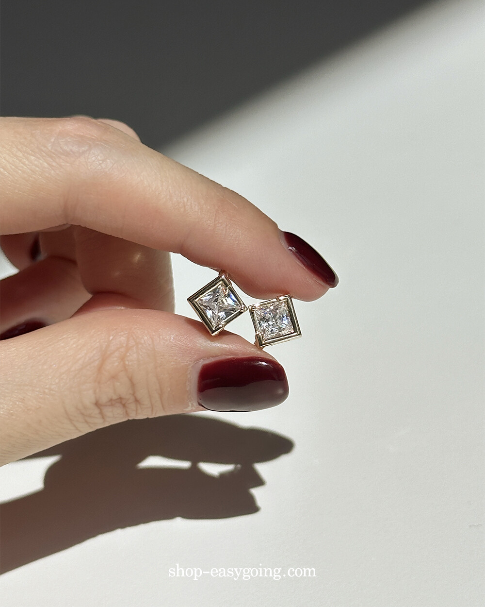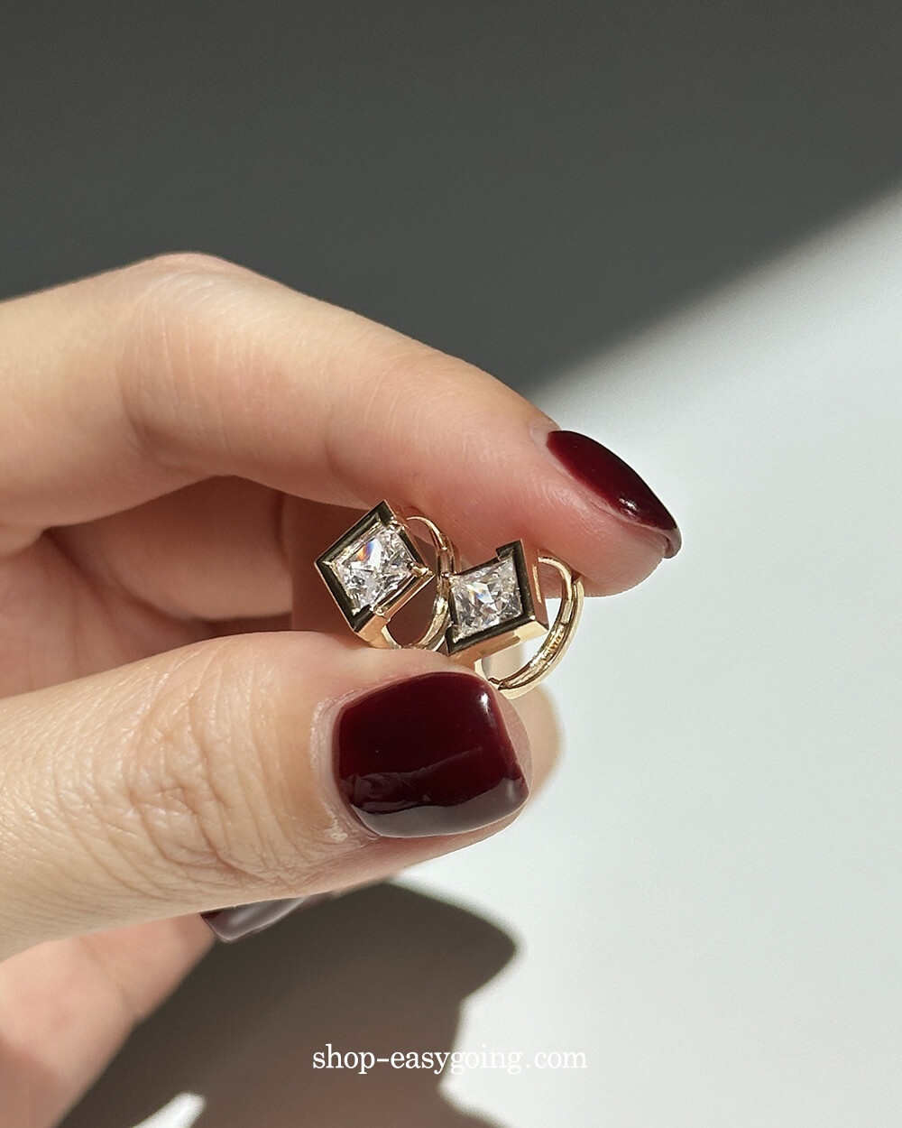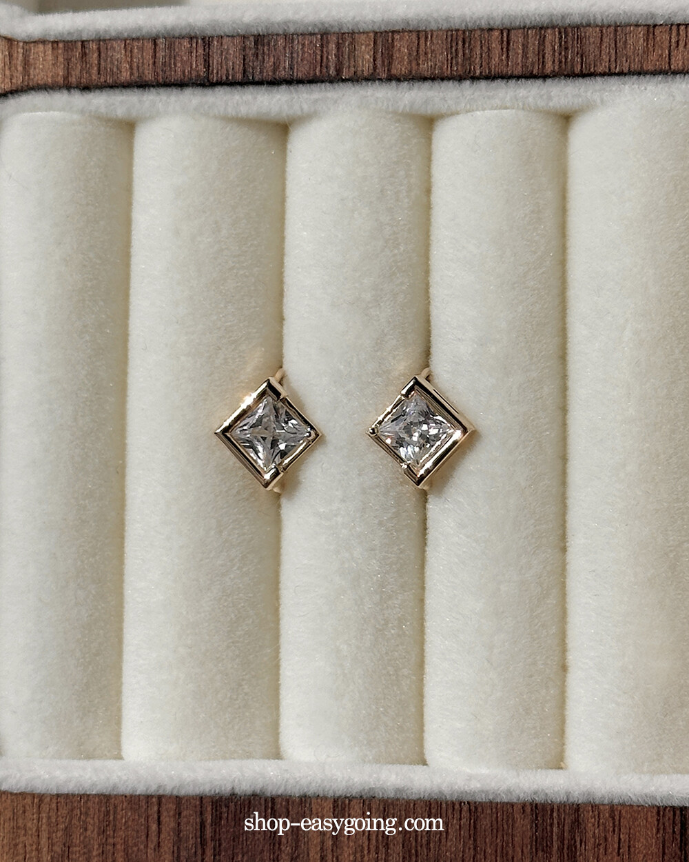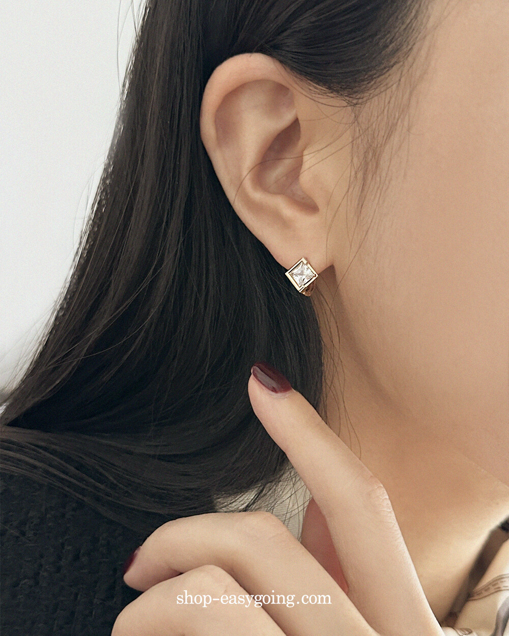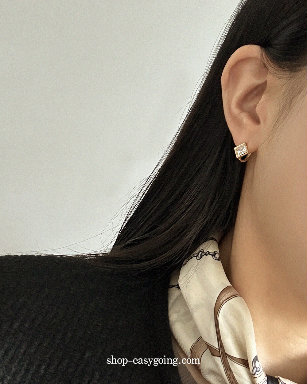 - 스퀘어 디자인인데 다이아 모양으로 세팅되어 유니크한 디자인이에요 사이즈가 너무 작지 않고 적당해서 특별한 날에 코디하셔도 손색없는 제품이랍니다