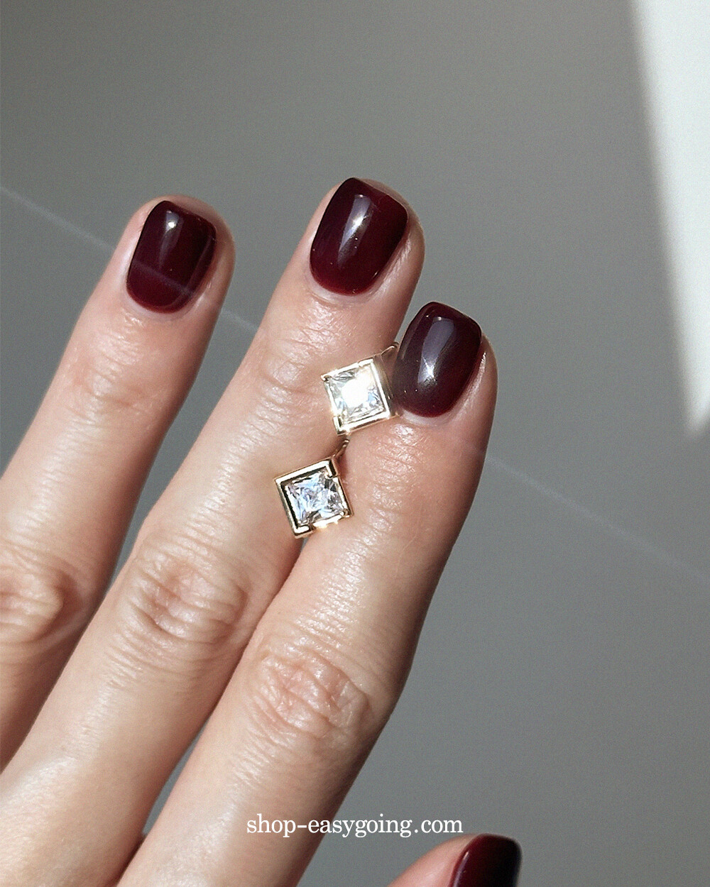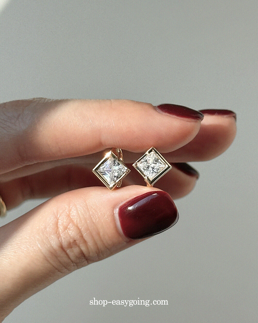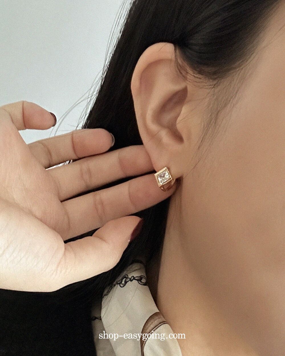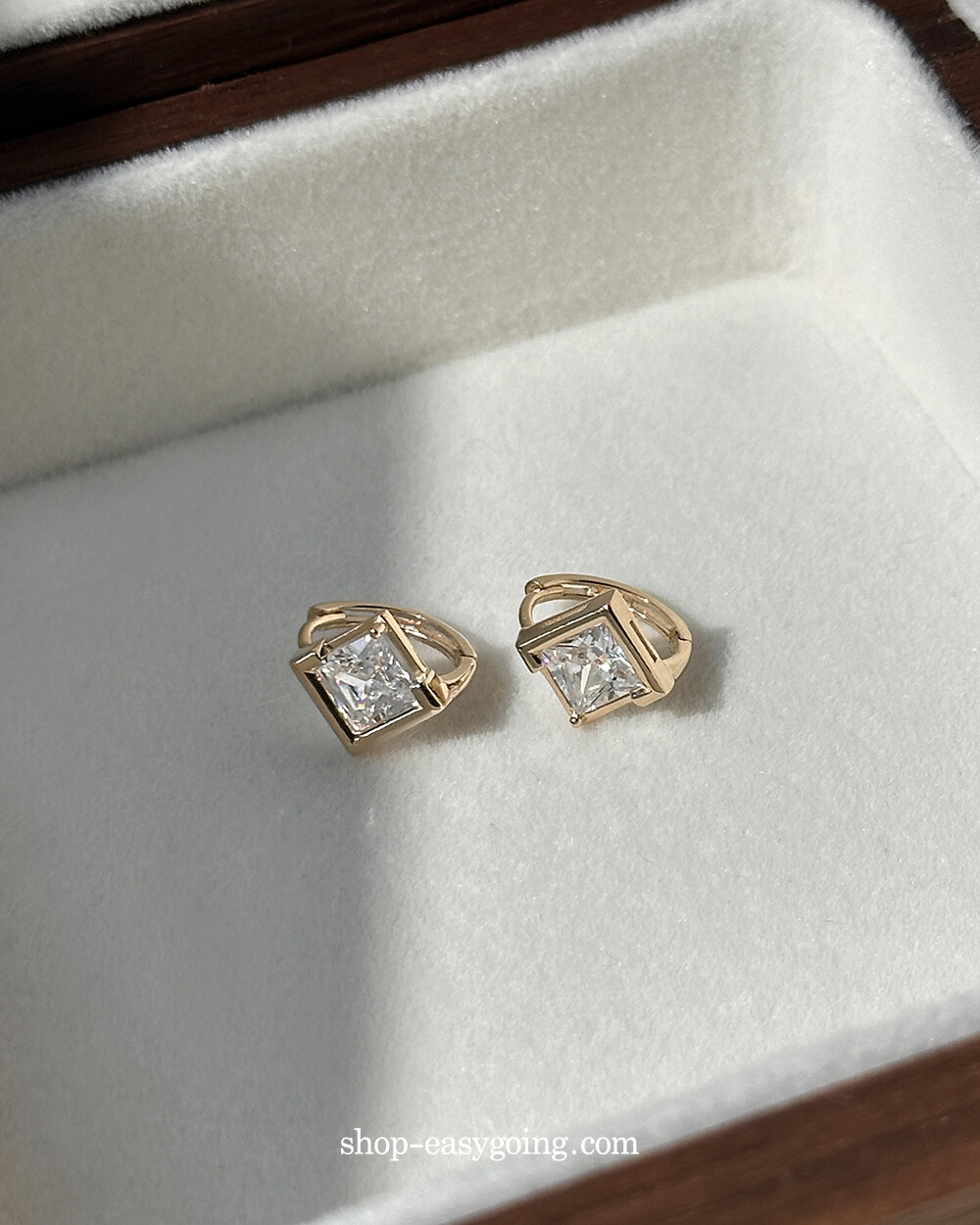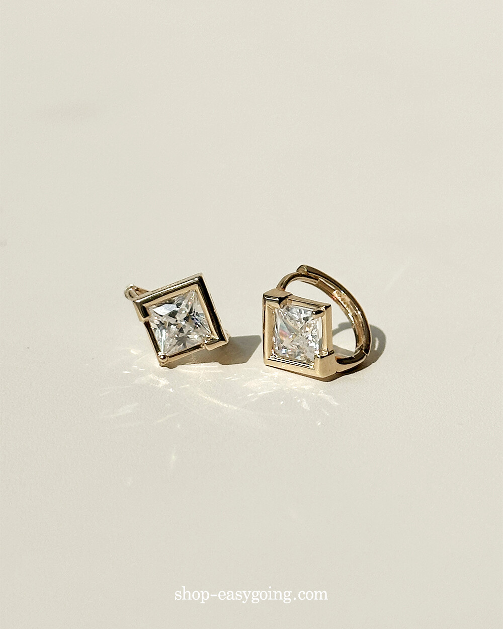 - 스퀘어 디자인인데 다이아 모양으로 세팅되어 유니크한 디자인이에요 사이즈가 너무 작지 않고 적당해서 특별한 날에 코디하셔도 손색없는 제품이랍니다