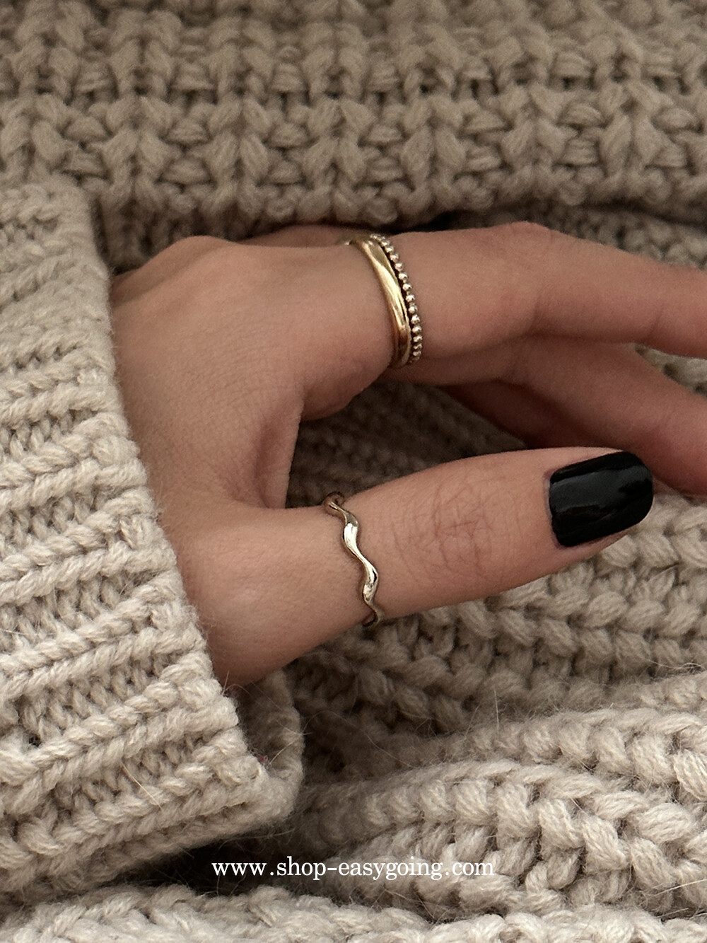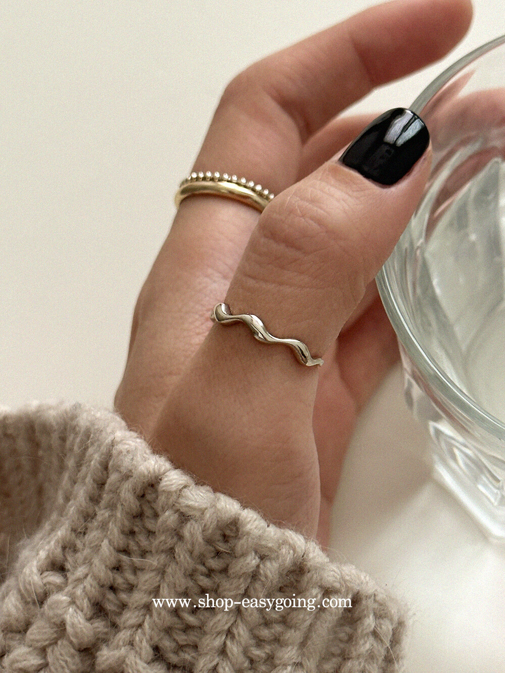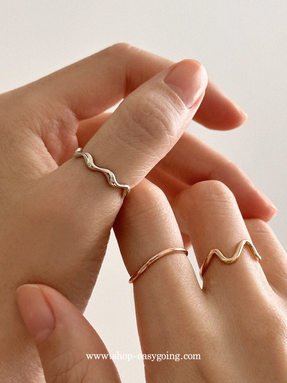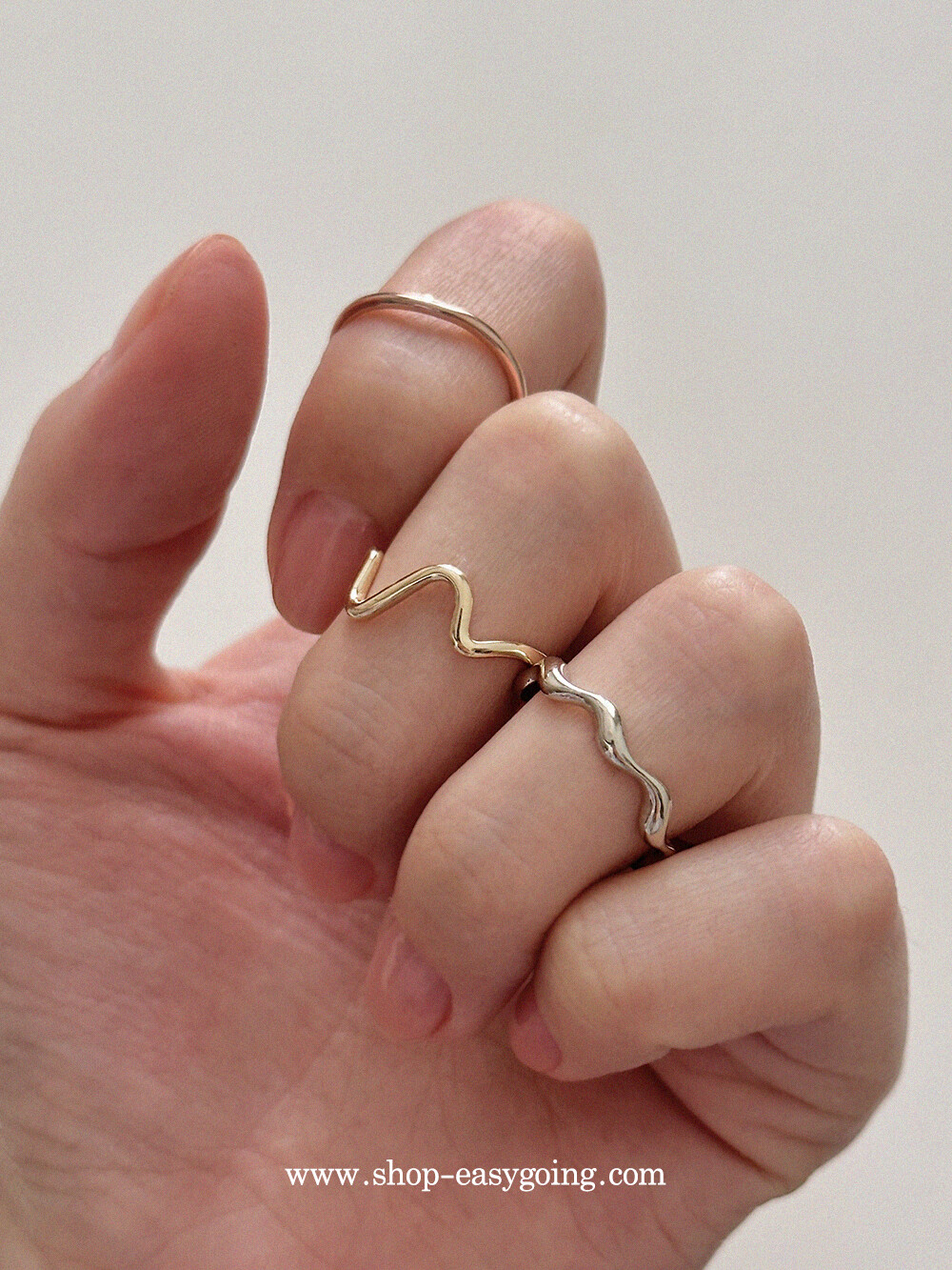 - 심플하면서 유니크한 디자인의 웨이브 반지예요 슬림한 라인으로 다양하게 레이어드하기 좋으실 거예요