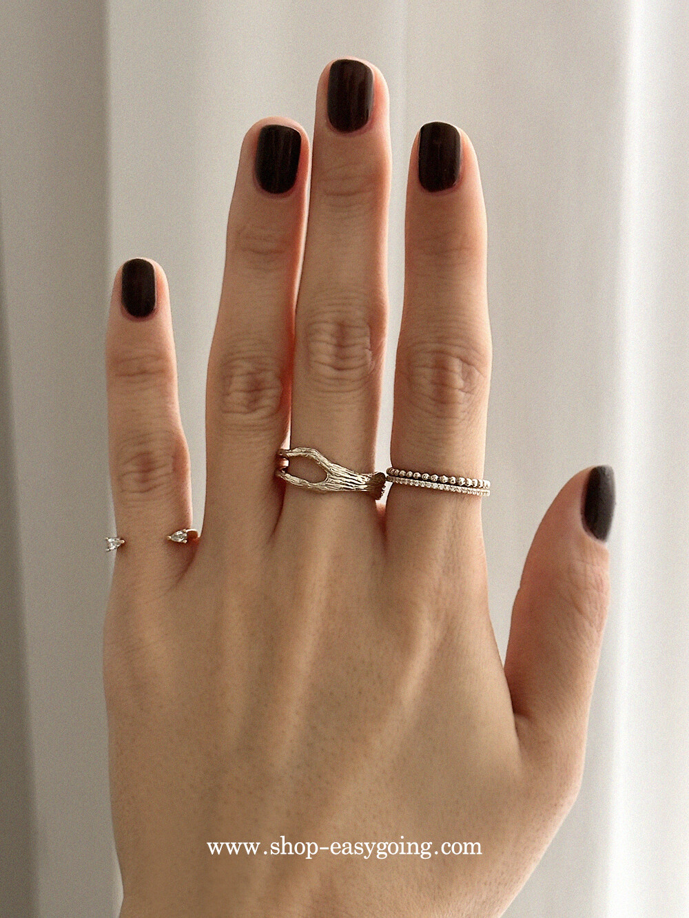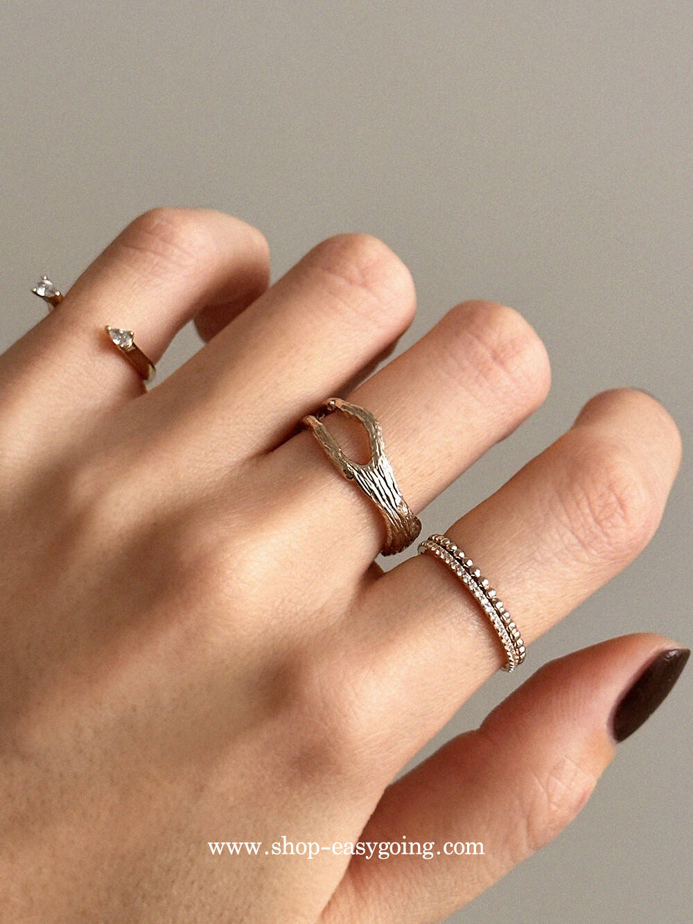 - 흔하지 않은 디자인이라 보자마자 마음에 들었던 제품이에요 적당하게 볼드하면서 엔틱한 텍스쳐까지 포인트가 확실하게 되어주는 제품이였어요 엄지반지로도 잘 어울려서 추천드립니다:)