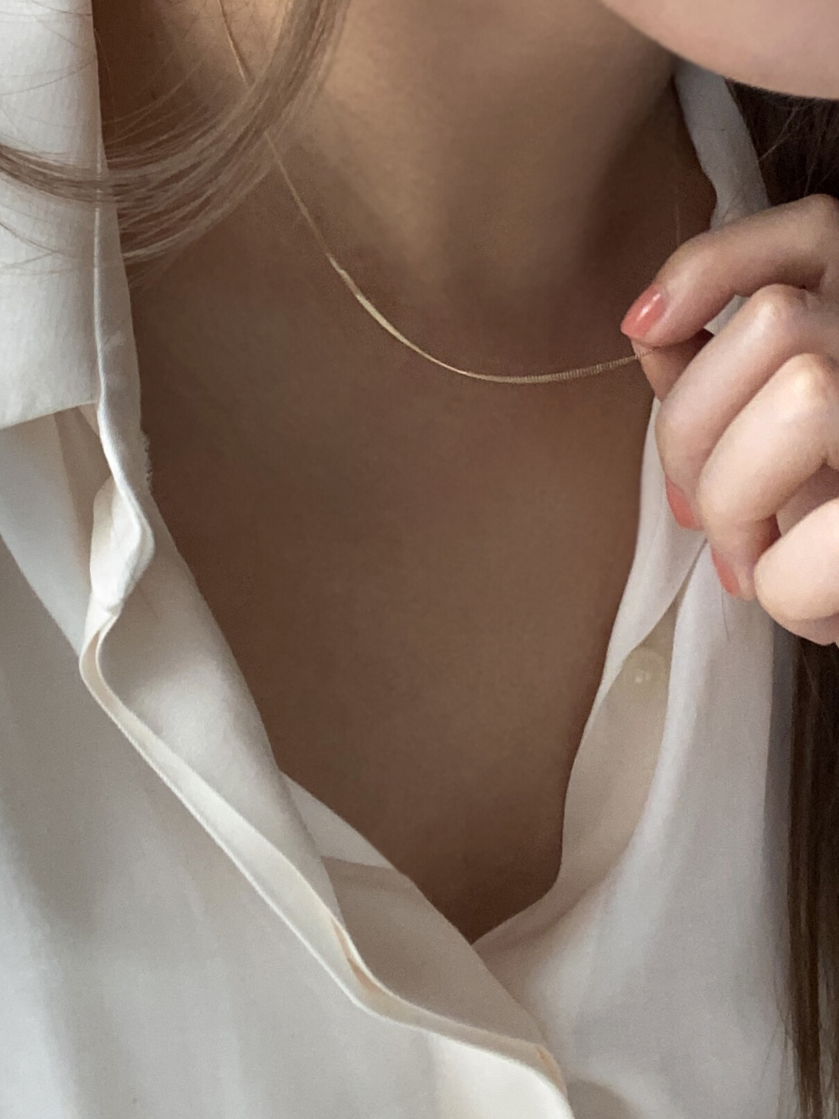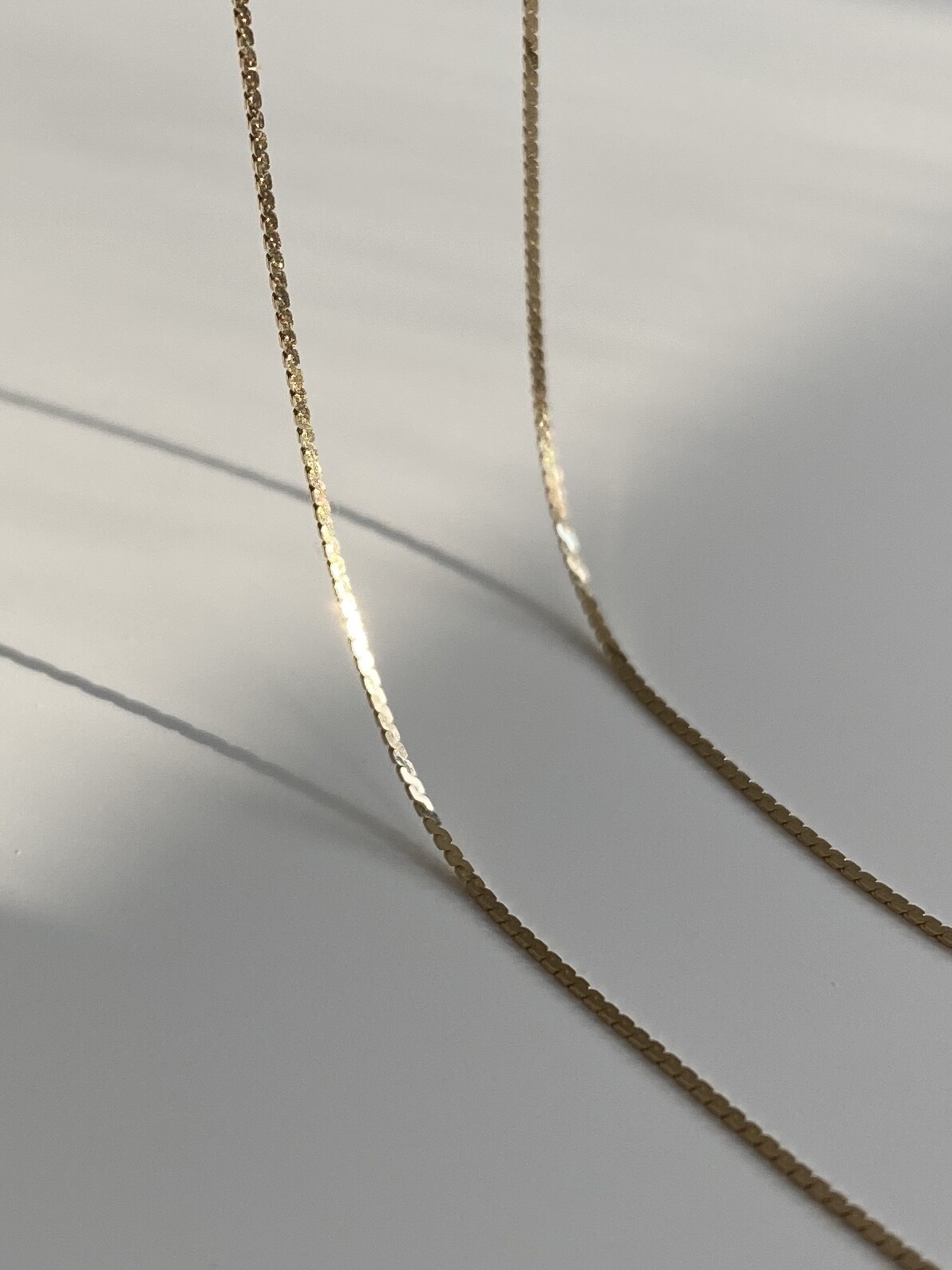 - 납작한 2푼 체인으로 실키한 실목걸이입니다.