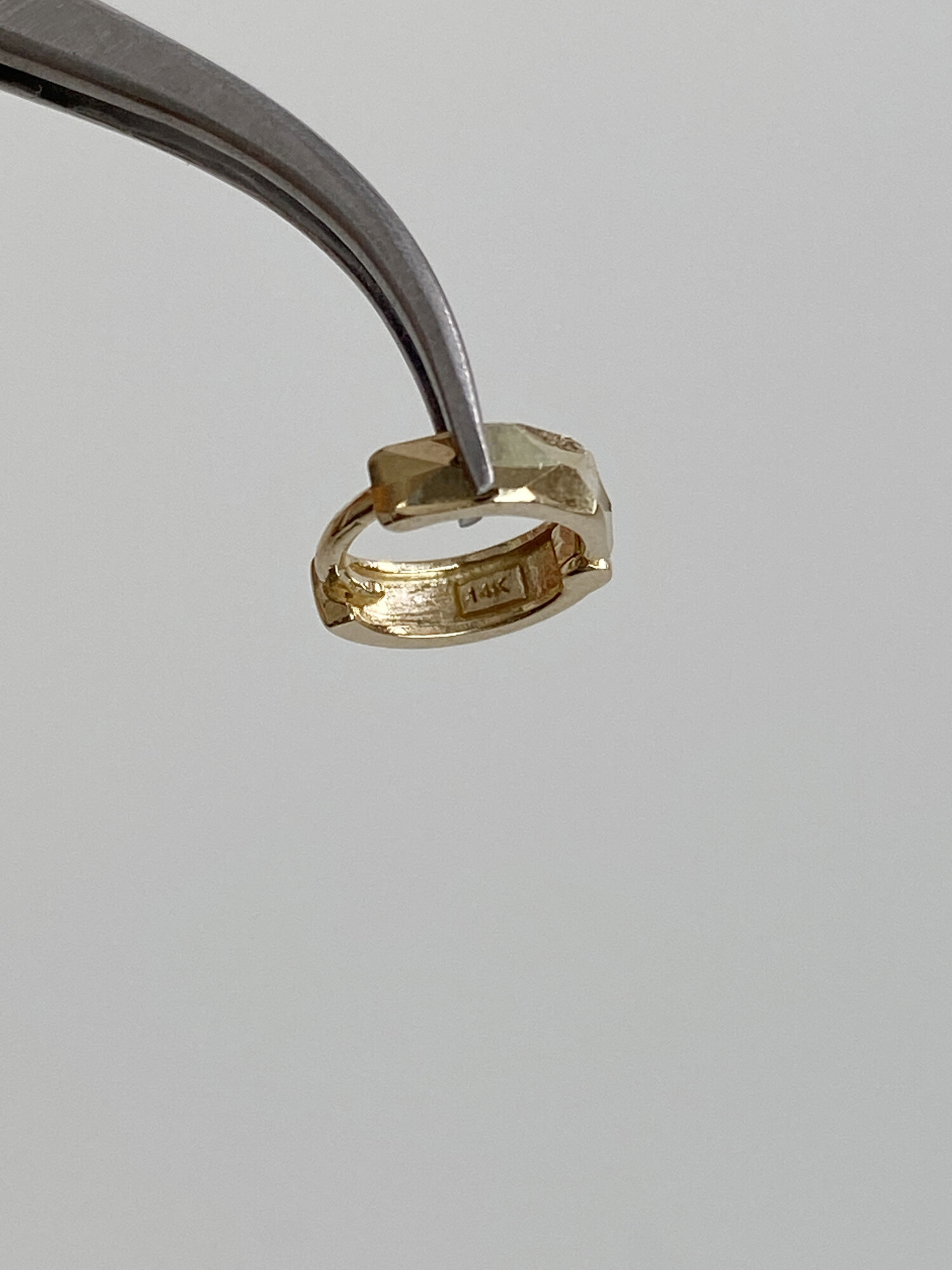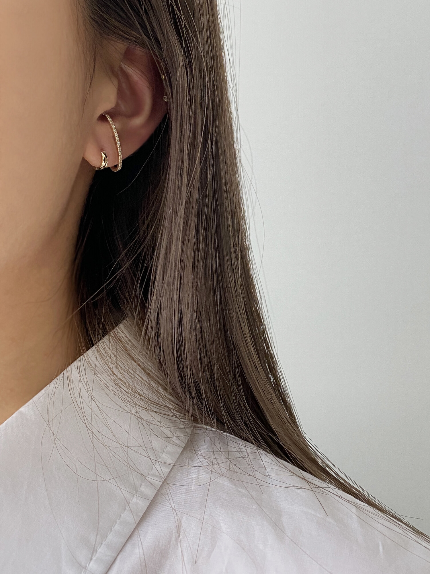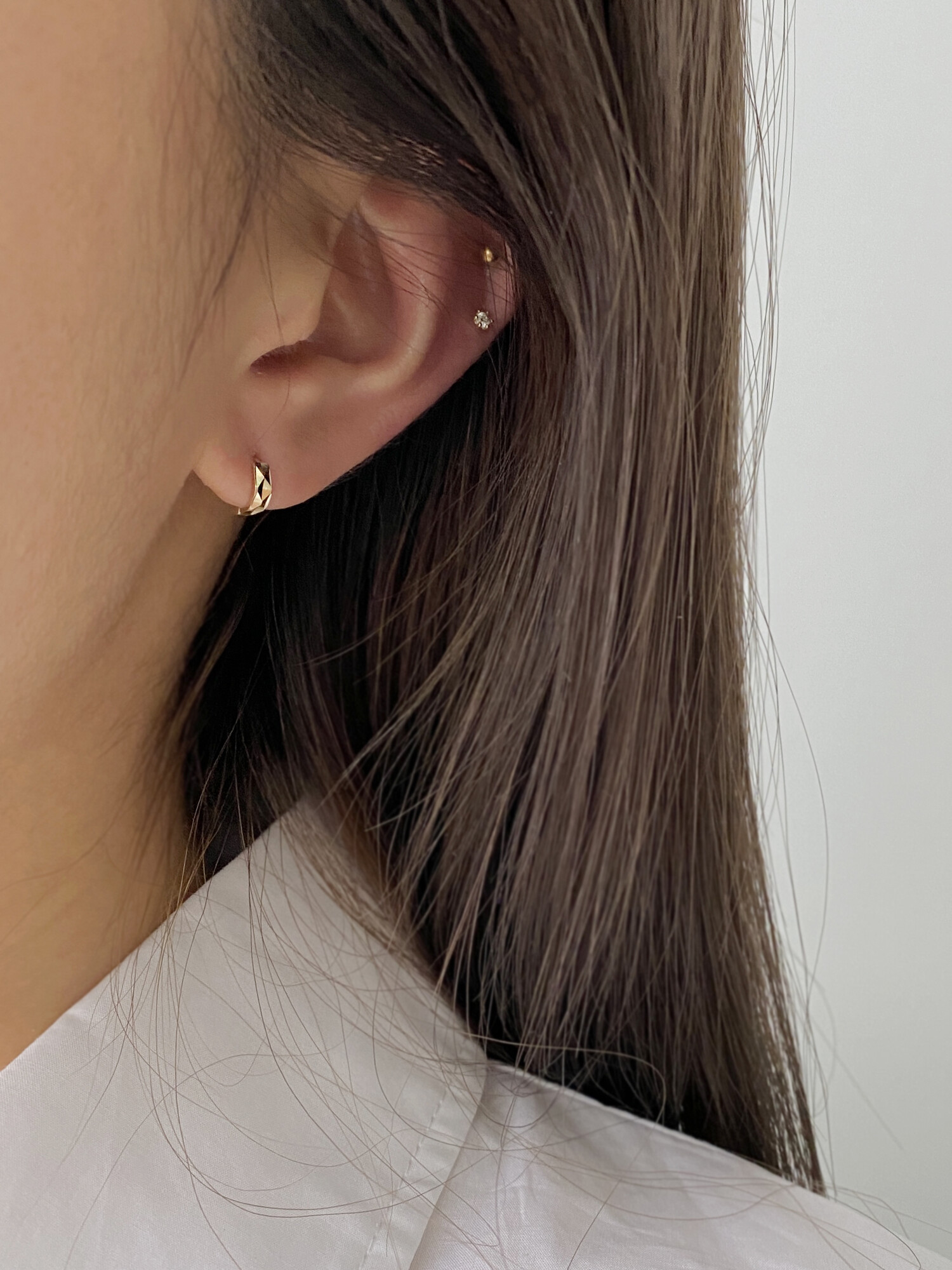 14k 제품 특성상 침 부분에 강하게 힘을 가하면 휘어질 수 있으므로 위치를 잘 맞추어 살짝만 눌러주세요.