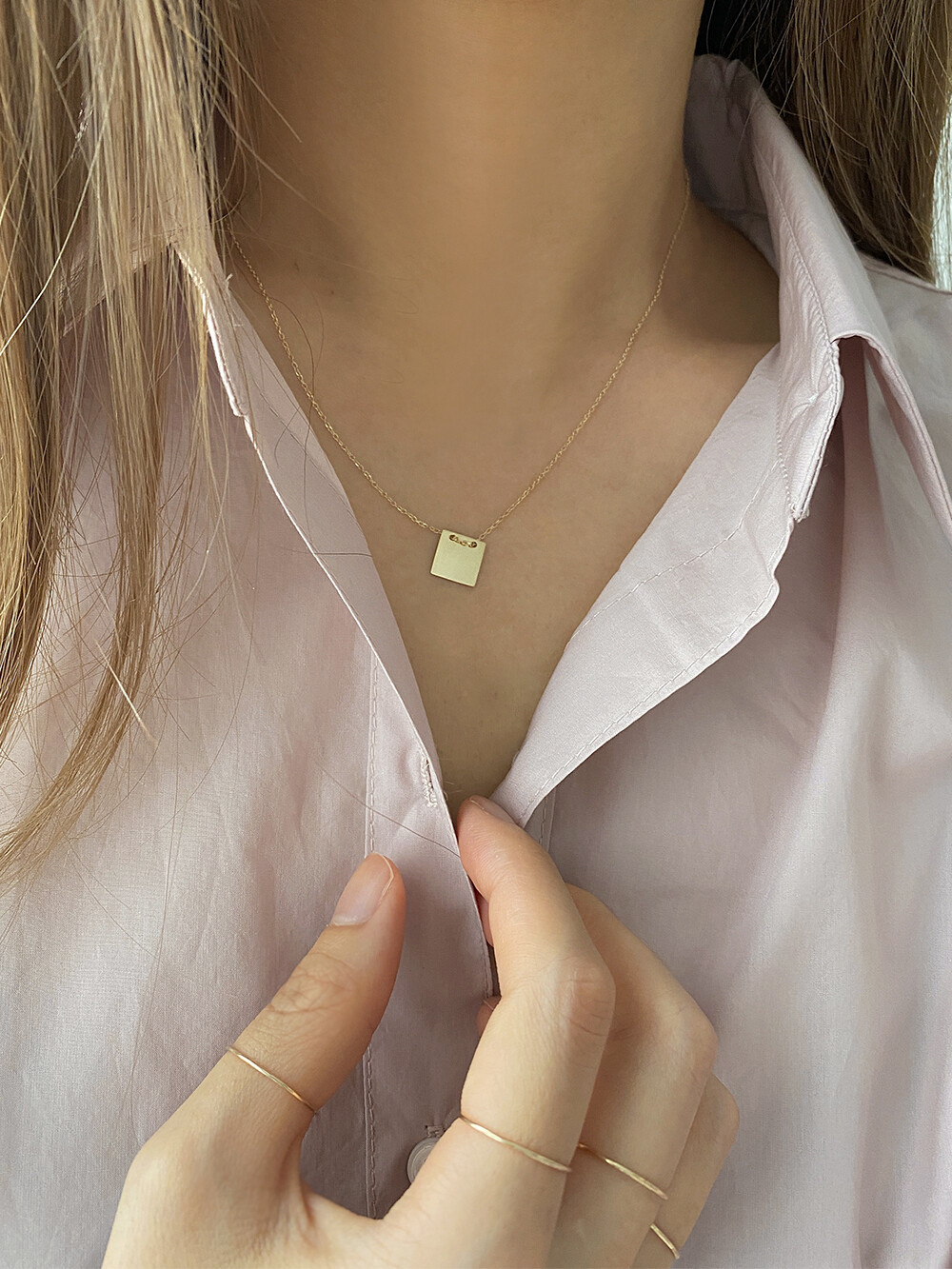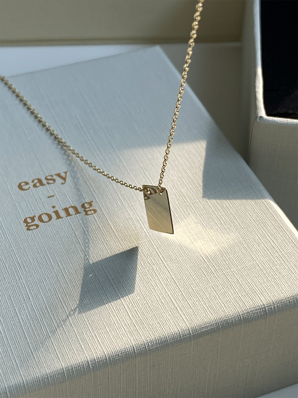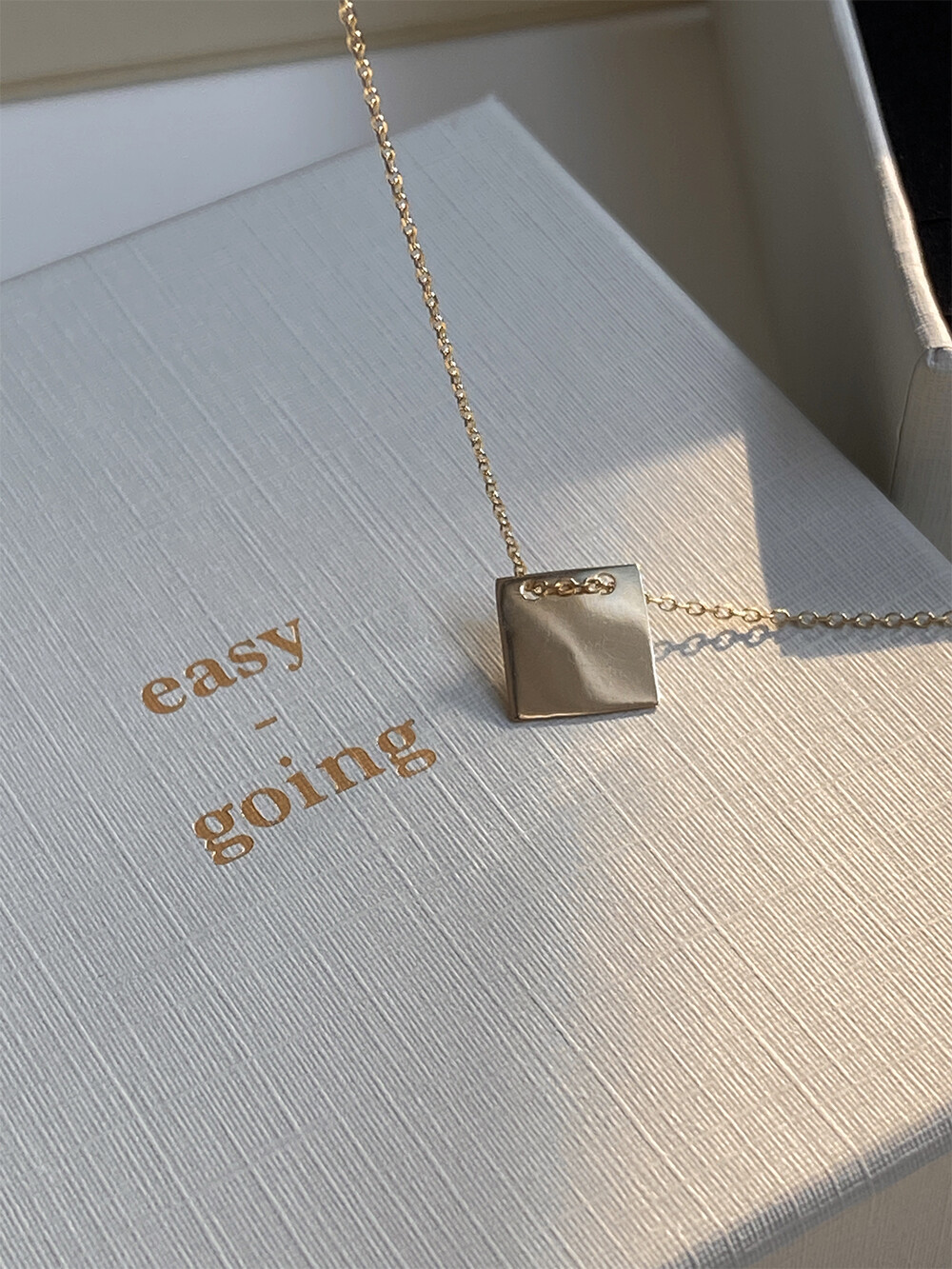 - 납작한 사각 펜던트가 유니크하면서 세련된 무드로 연출되는 네크리스입니다.