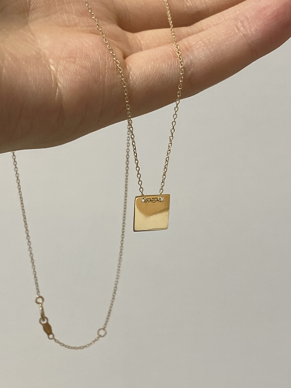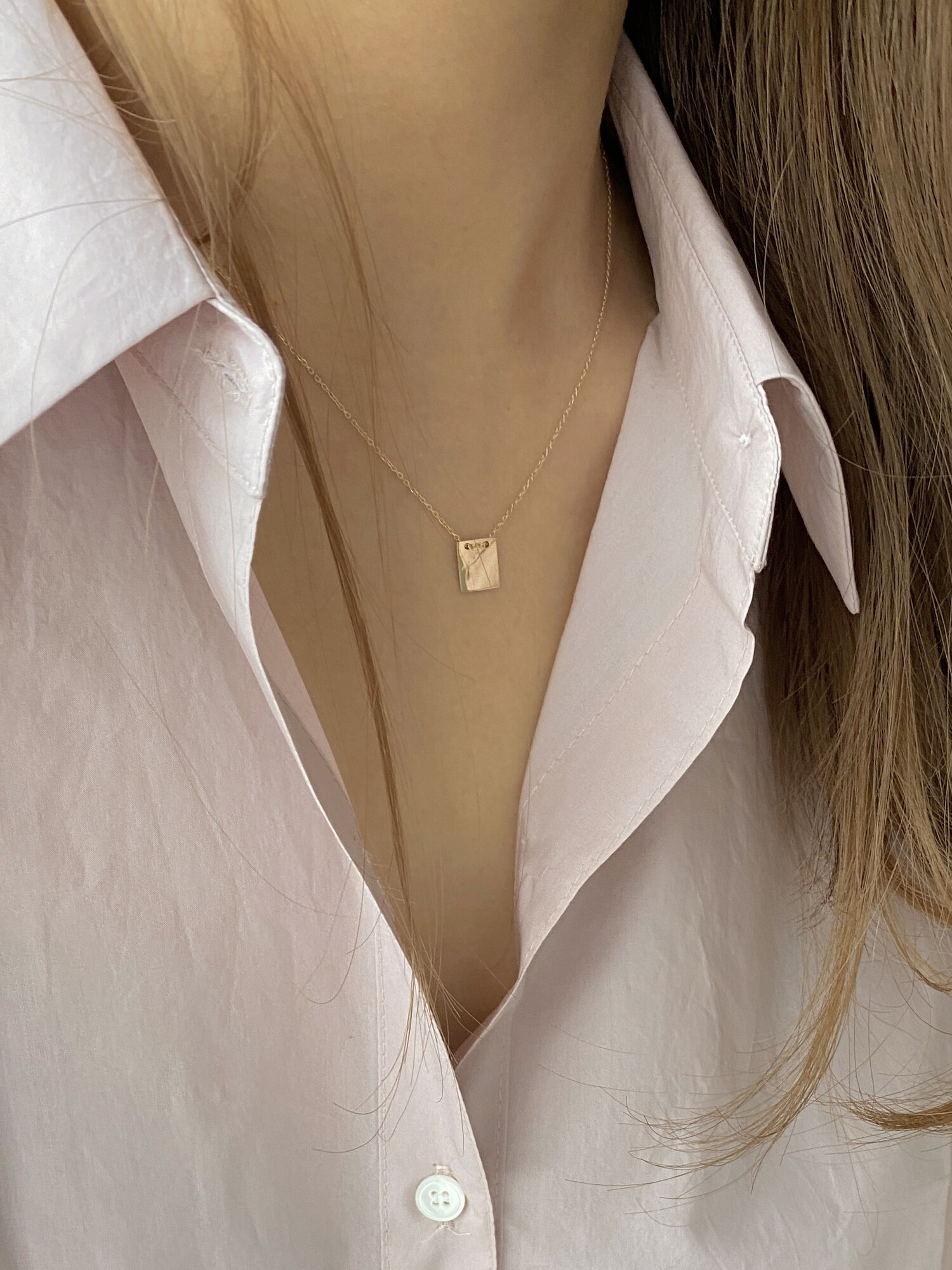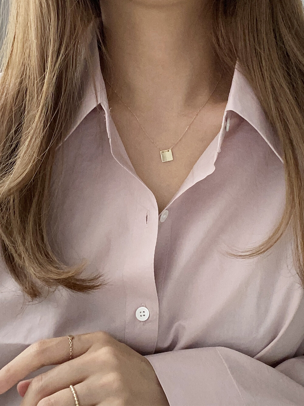 - 납작한 사각 펜던트가 유니크하면서 세련된 무드로 연출되는 네크리스입니다.