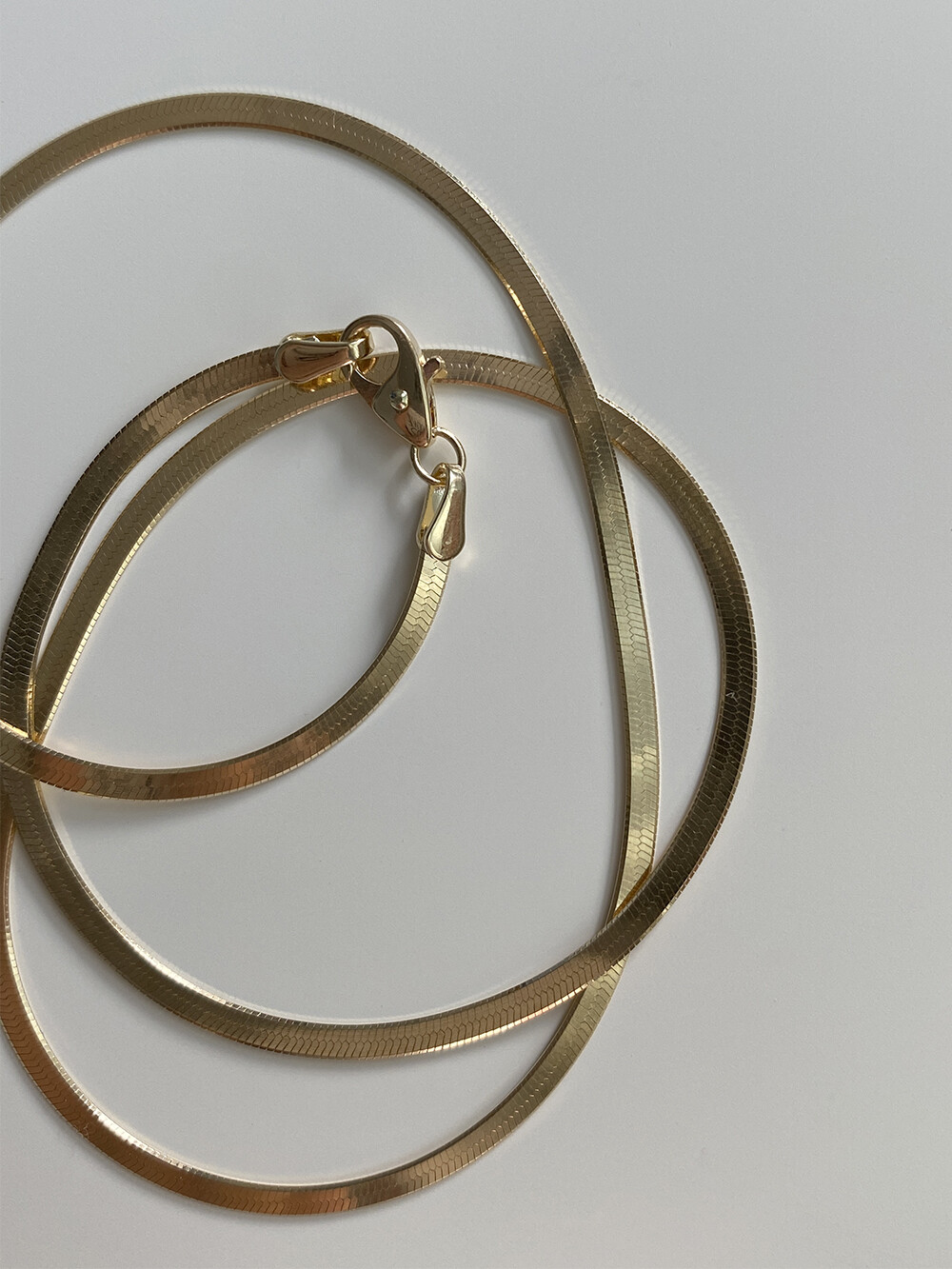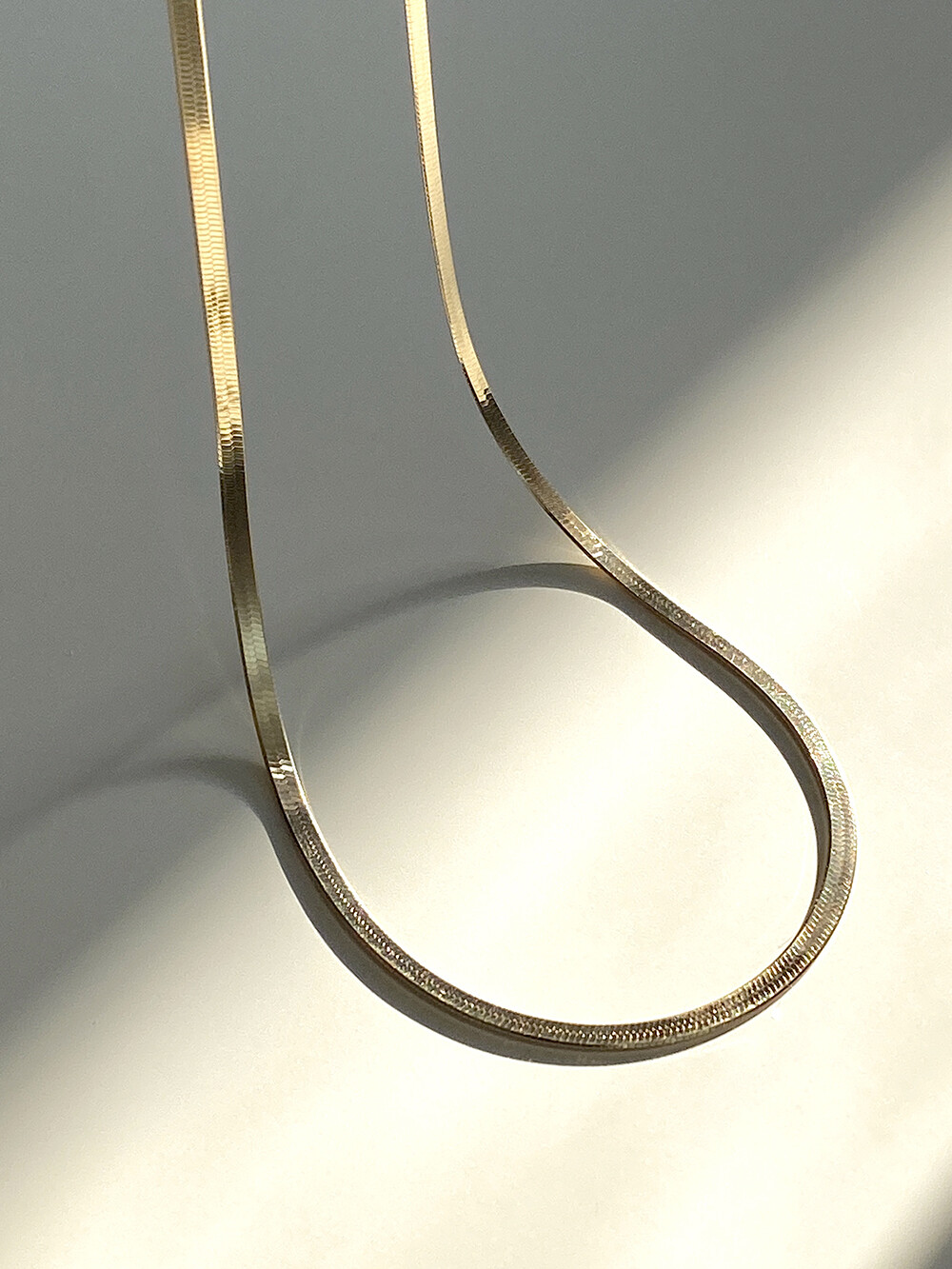 - 매끈하게 반짝이는 스네이크 체인 목걸이입니다. 트랜드와 상관없이, 계절과 상관없이 매치할 수 있어 하나쯤 소장하셔야할 기본 아이템입니다.