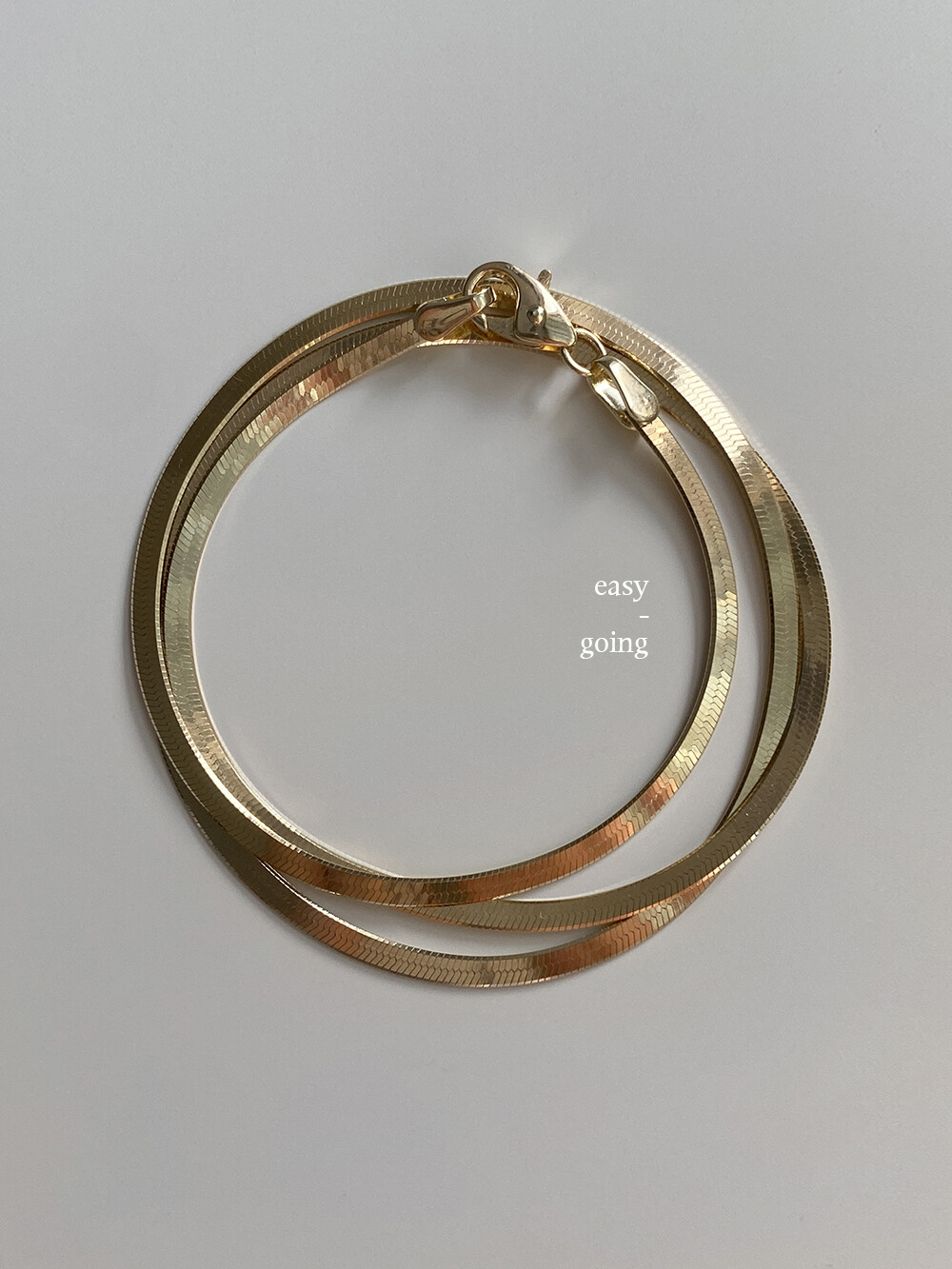 - 제품 상세사진과 착용사진은 모두 14k 38cm 제품입니다. 38cm는 초커처럼 짧게 착용되어 다른 제품들과 레이어드 하기 좋았습니다. 착용모델은 목이 얇은 편인데요 뱀줄 특성상 38cm가 목에 딱 맞게 착용되었습니다. 단품 착용하시려면 40cm 이상으로 추천드려요